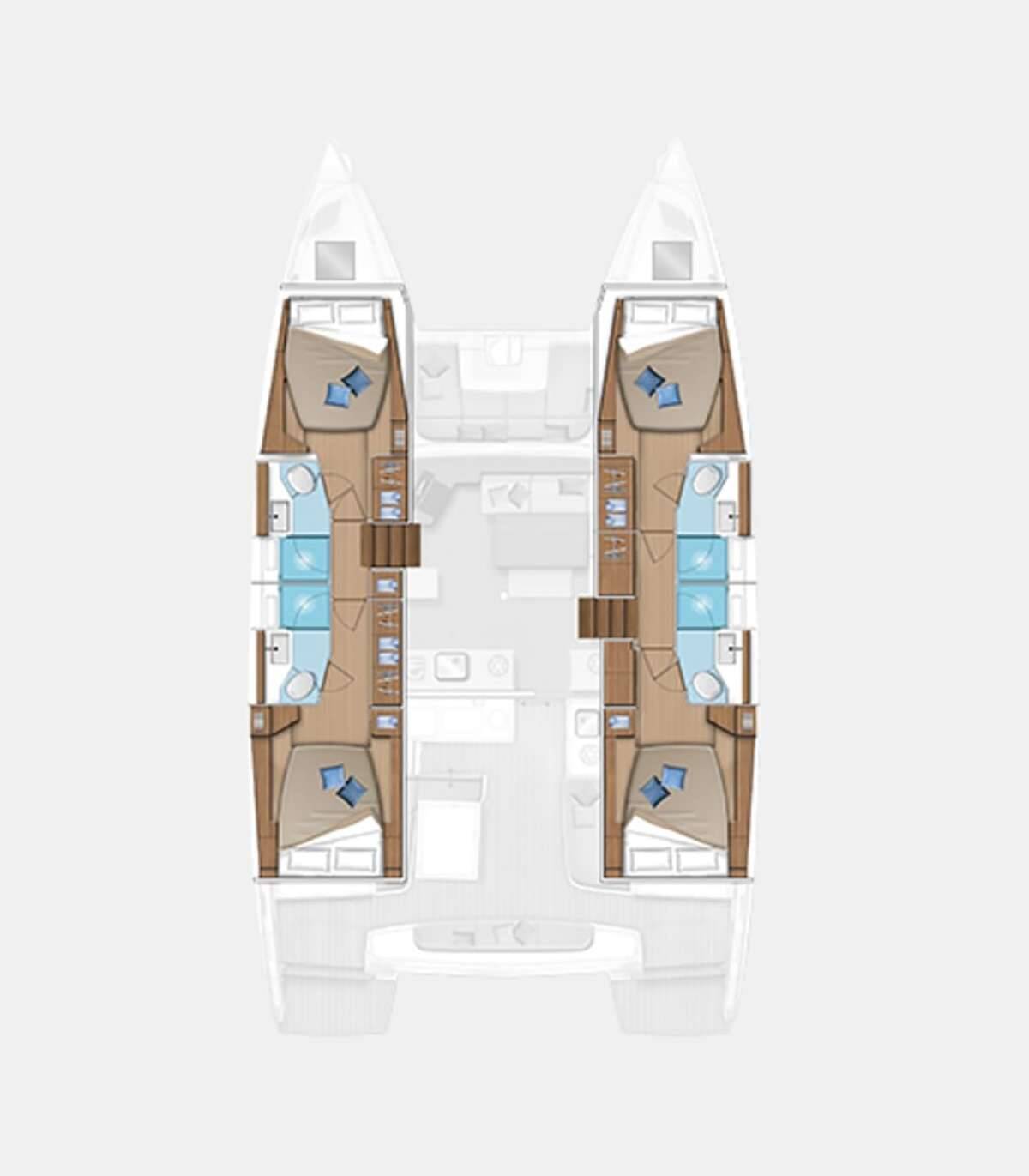 Accommodation: Lagoon 46 Moondance has 4 double cabins with 4 wc(electric)