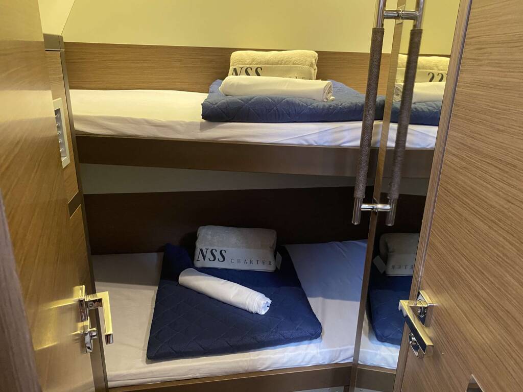 First Class Pack52- 55 (Priority Boarding with Welcome Cocktail + Cleaning + 2 Crew + Bed Linen + 2 set Bath Towels per person + Beach Towels + Tender > 4mt with Outboard engine + Nespresso Coffee Machine + Natural Park Tax): 5,200.00 €