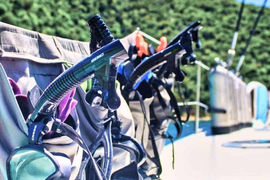 Three dives are offered from the yacht gear rental at guests' expense at the fee $230 for the week - per diver.