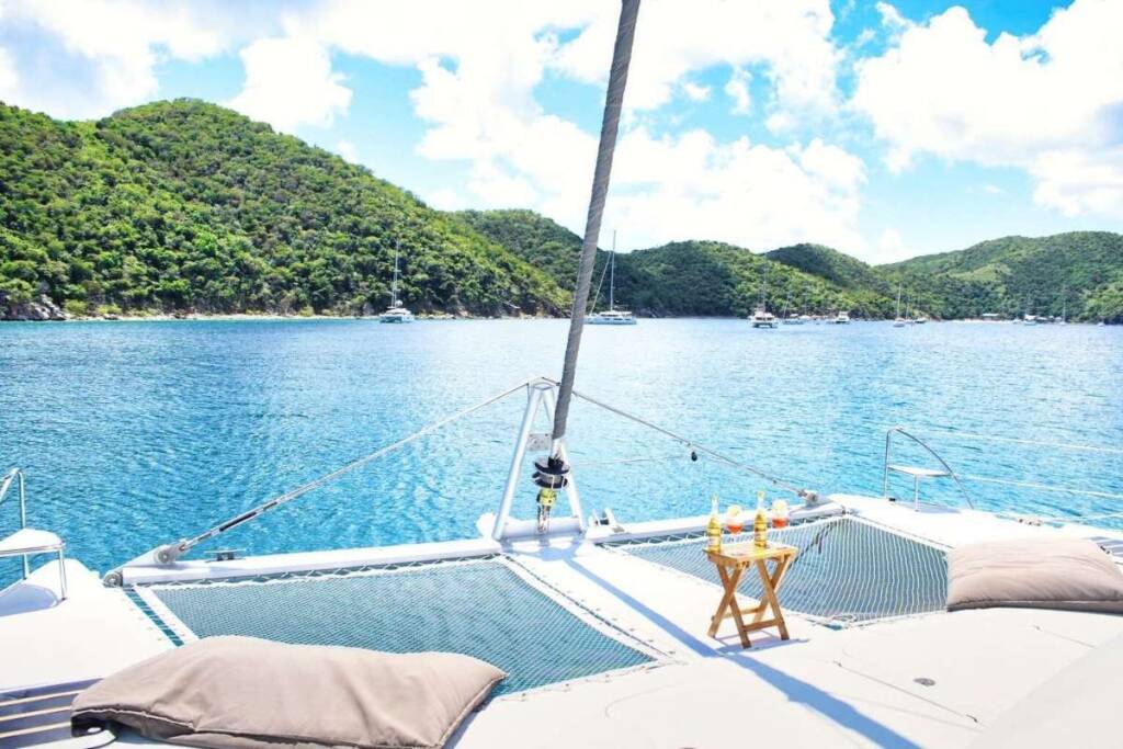 Luxus-Crew-Katamaran ODYSSEA, Baujahr 2012, liegt vor Anker in Caribbean Leewards, Caribbean Windwards. Sie verfügt über 4 Kabinen und bietet Platz für 8 Personen.