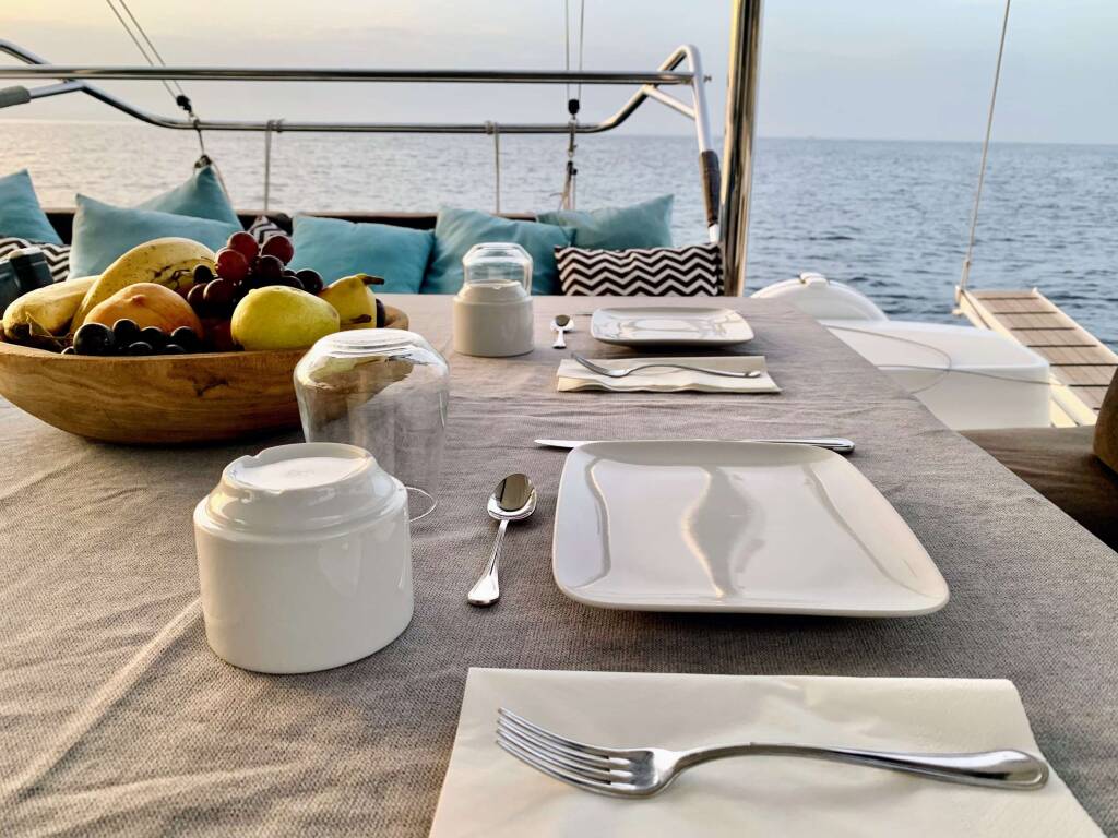• COMFORT PACKAGE € 4.100 per week mandatory: 3 crew, final cleaning, courtesy kit Ortigia, set bed linen and towels with bathrobes and beach towels, 2 SUP, 2 Sublue Nawbow, water carpe,double seat Airstream, snorkeling and trolling equipment, tender with outboard engine