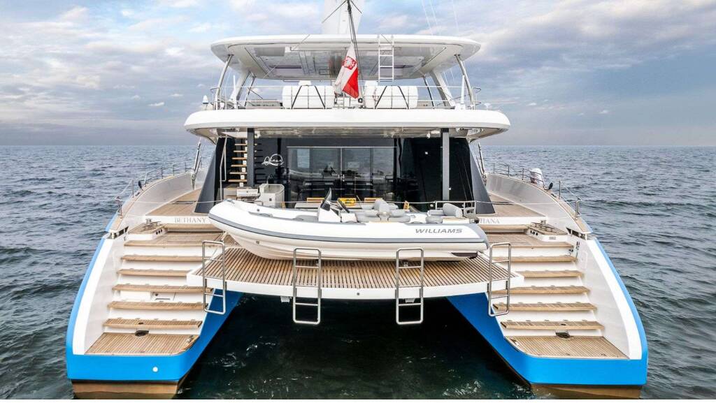 Tender Lift Extends for a Boat Width Deck at the Waterline
