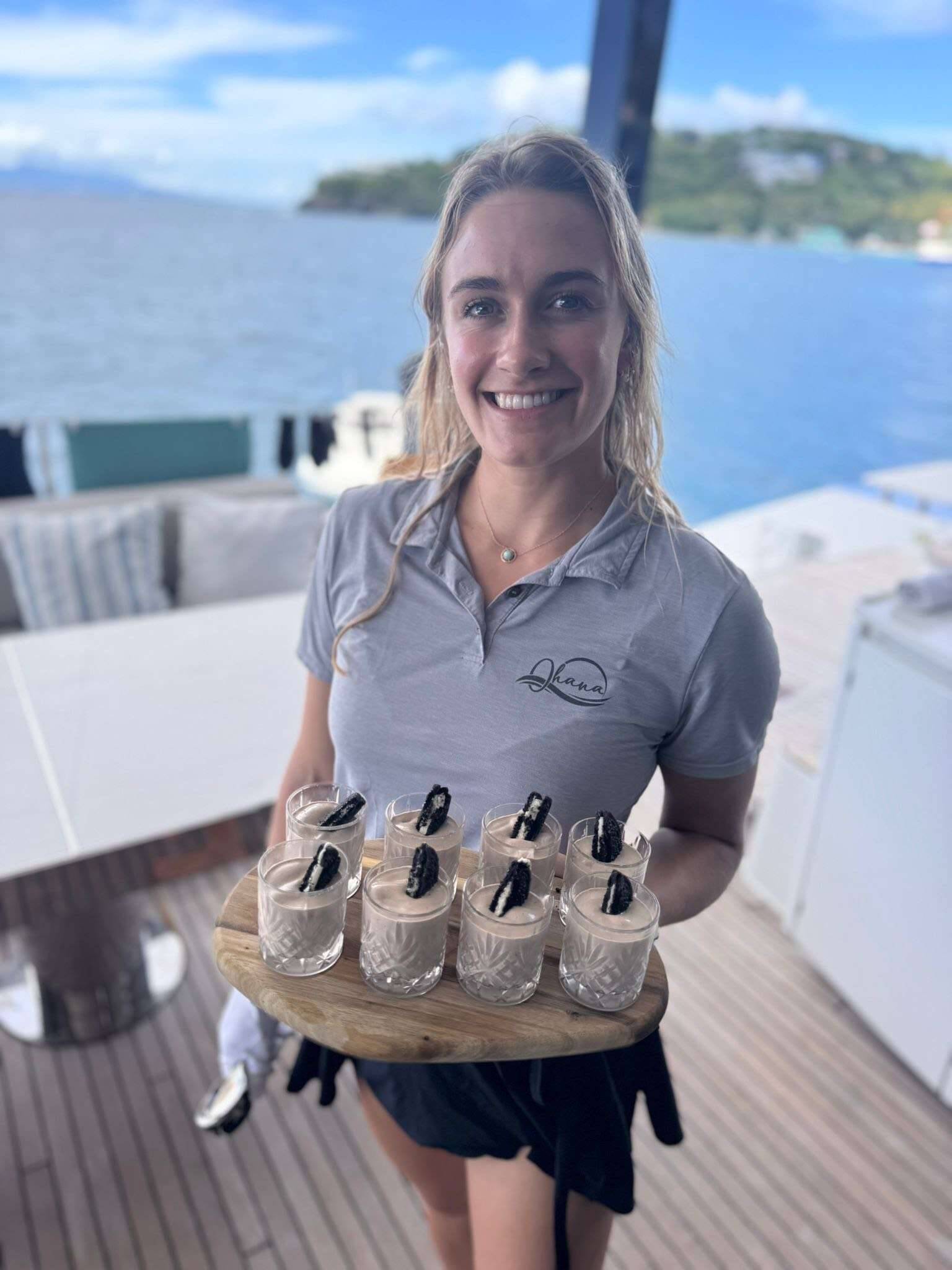 After earning her Bachelor’s Degree in Finance in 2024, Maddy decided spreadsheets and boardrooms weren’t nearly as exciting as sunshine and saltwater. With five years as a varsity student-athlete, her competitive streak means she’s always game for anything—beach volleyball, a hike, or a fiercely contested family board game. In her two years sailing with Ohana, she has perfected her craft, sharpened her eye for detail, and mastered the fine art of having fun at work. You can count on Maddy to keep spirits high, laughter flowing, and everyone hydrated with the drink of their choice.