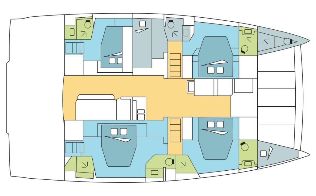 Accommodation: Four well appointed queen staterooms and the crew takes the twin bunk cabin.