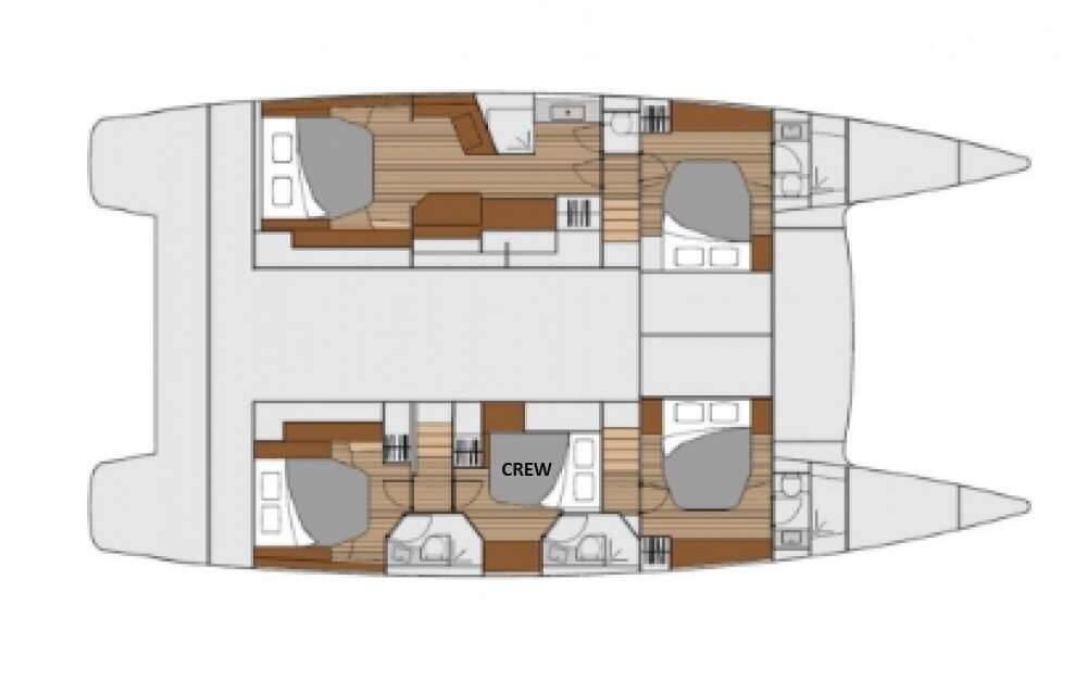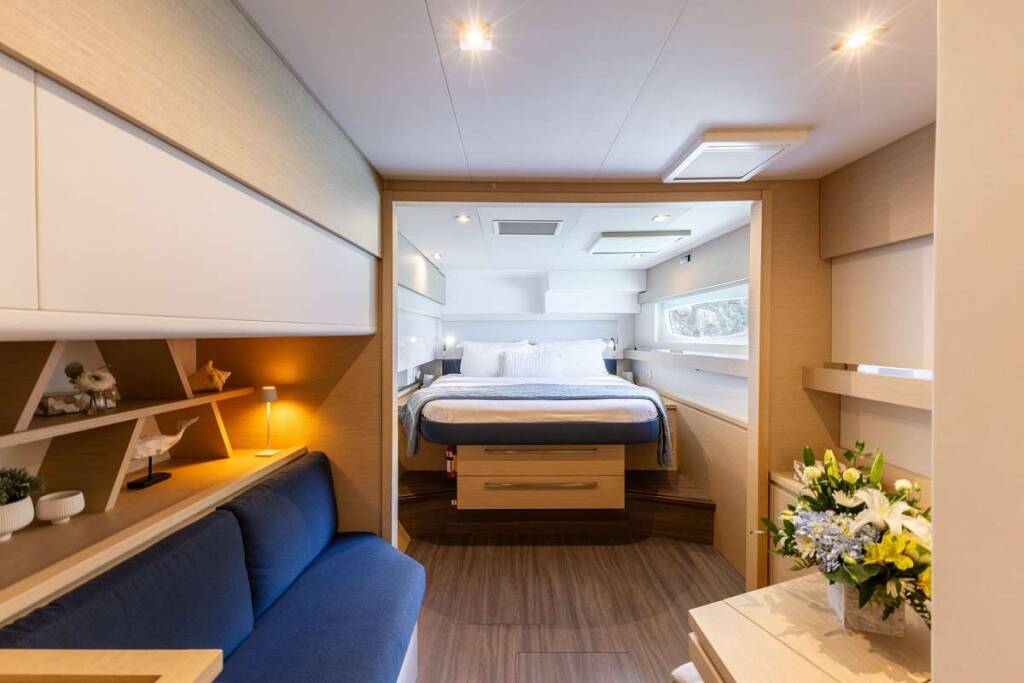 The yacht boasts full air conditioning, a water maker, an ice maker, and onboard WIFI. Its interior, adorned with beautiful light wood, creates a modern and inviting atmosphere.