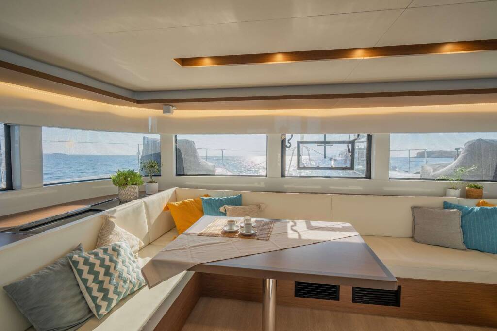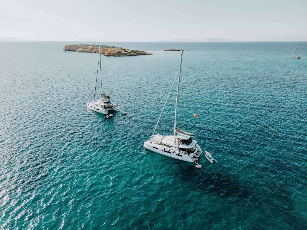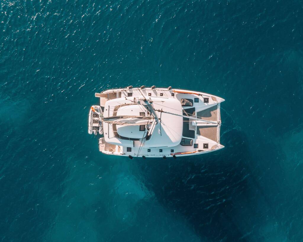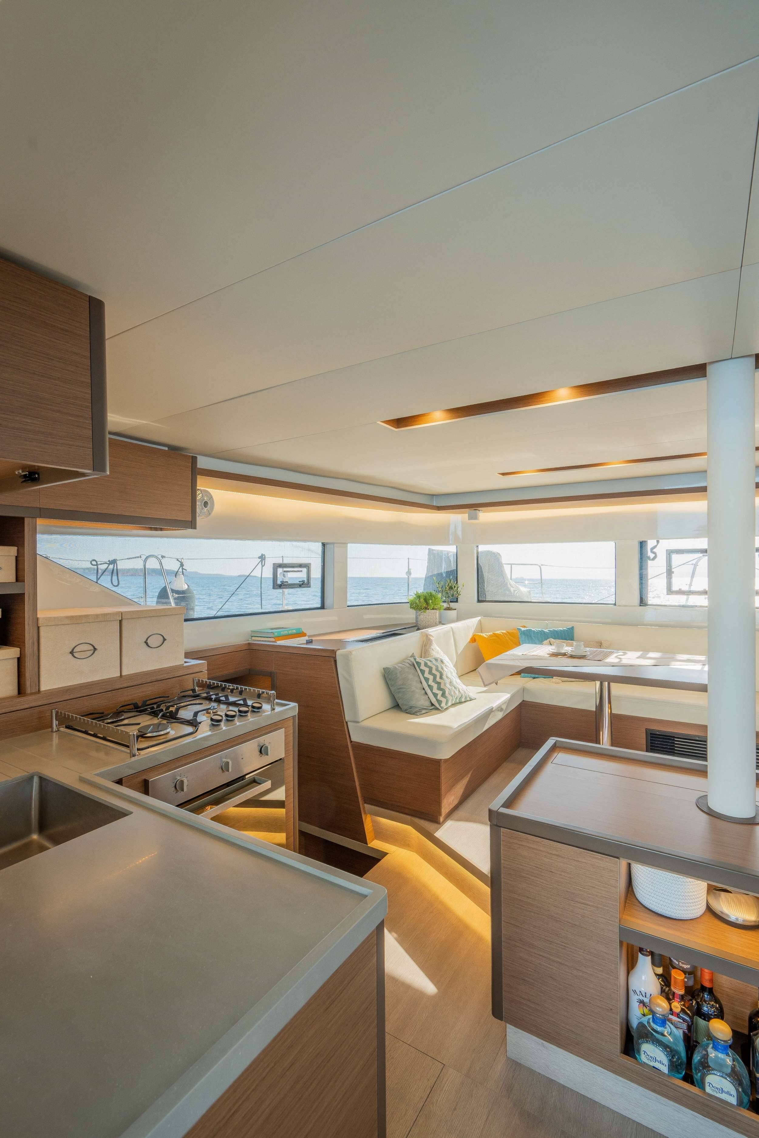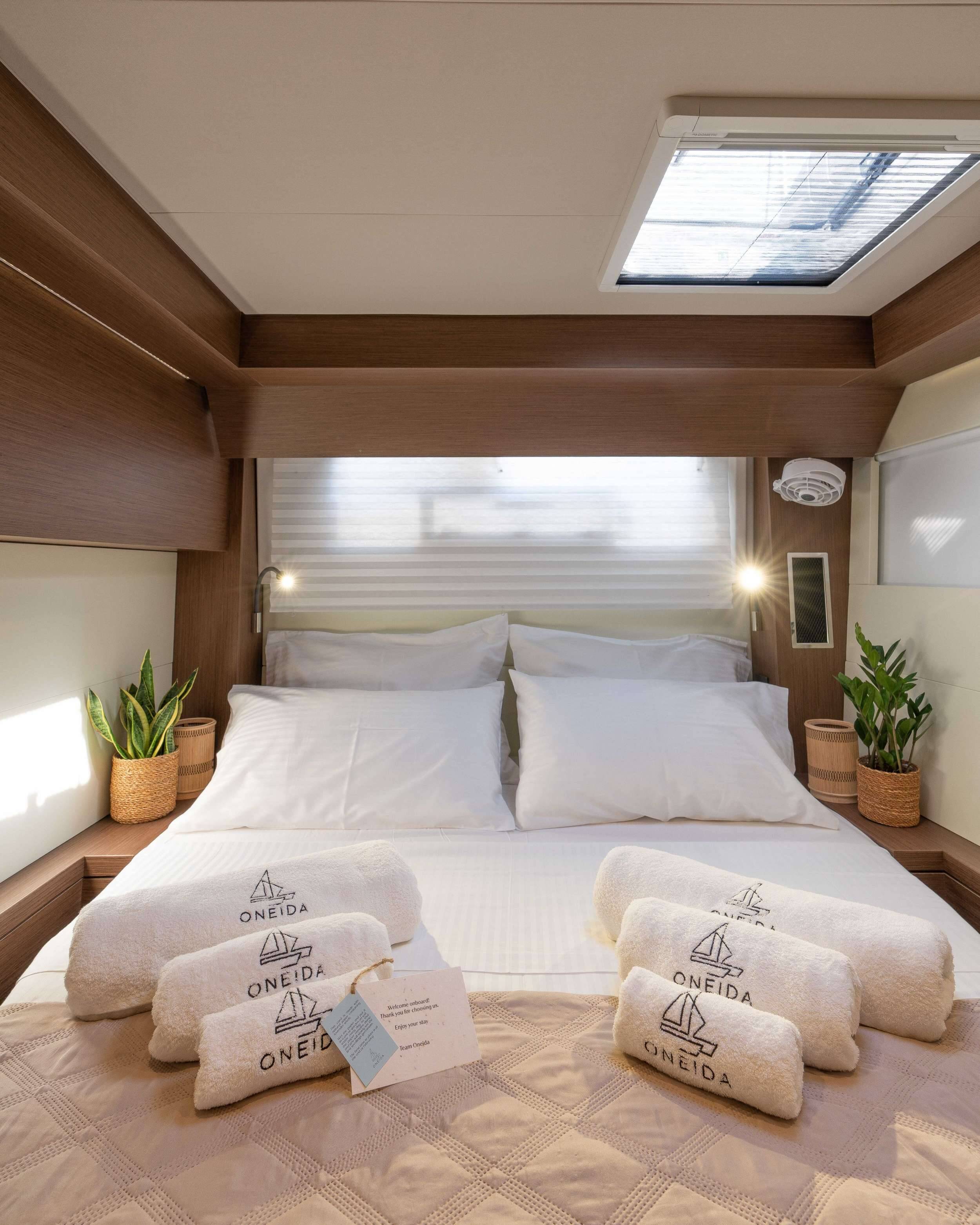 Luxus-Crew-Katamaran ONEIDA 2, Baujahr 2022, liegt vor Anker in Greece. Sie verfügt über 4 Kabinen und bietet Platz für 8 Personen.