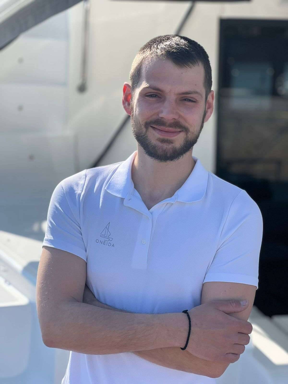 “Sea is my life” is Dimitris’s life quote. Since he was a child he remembers himself in a boat. He is an experienced sailor and captain of power and sailing boats. The first boat he was captain in, was his family’s 55ft. traditional Greek Kaiki. Since then he had the opportunity to sail around Greek waters with different kind of boats. During all these years he came across of all kind of weather and sea conditions which made him familiar with the difficult Greek seas. His natural capability of communicate with people and the fact that he can remain calm in any unpredictable situation, creates for his guests and fellow crew members a feeling of comfort, relaxation and above all safeness during the travel. Captain Dimitris is onboard ONEIDA 2 since day one!