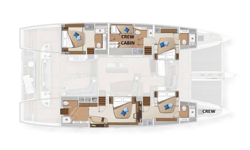 Accommodation: REVE BLEU is accommodating up to 8 guests in 4 ensuite staterooms as below:
