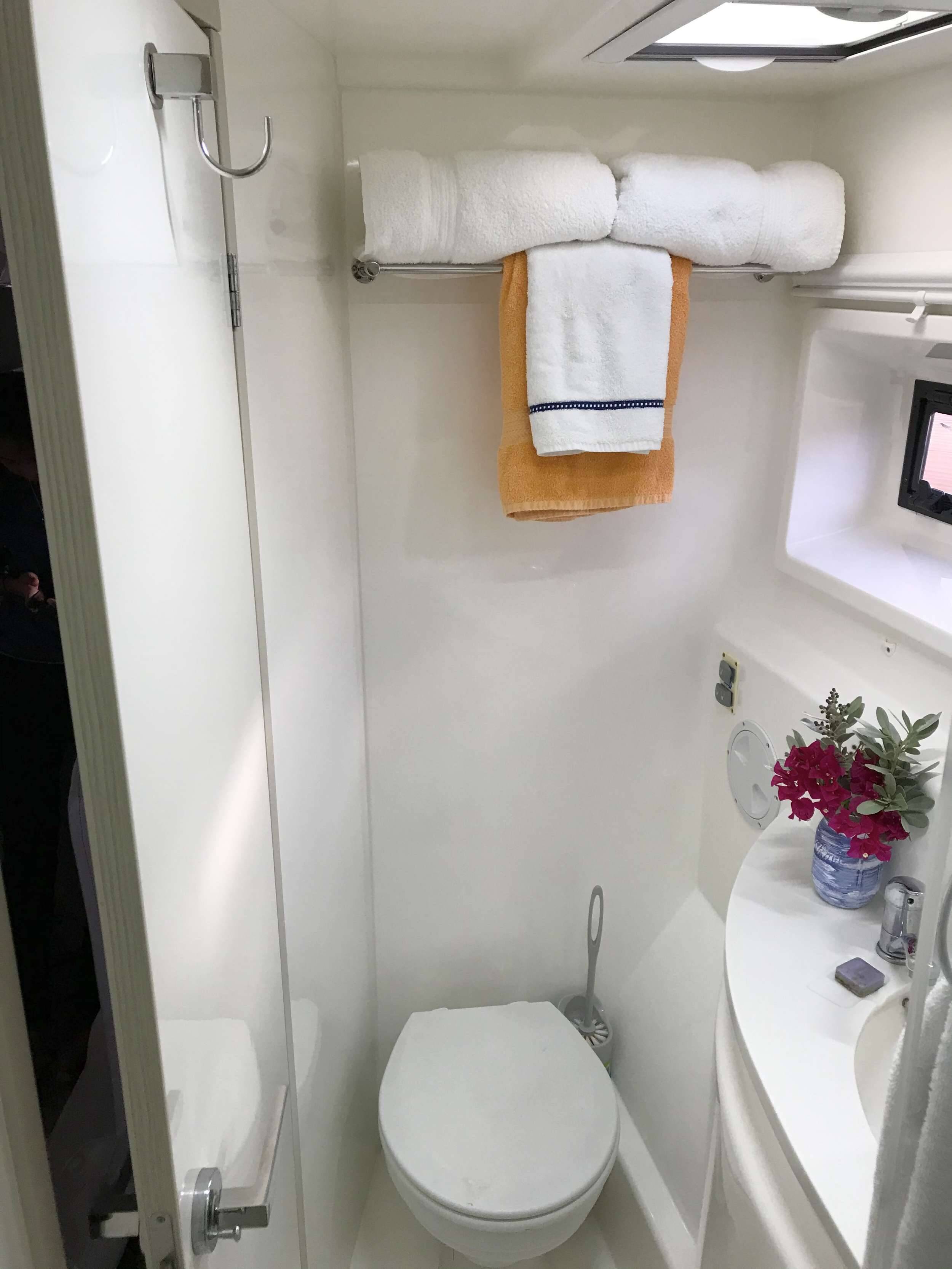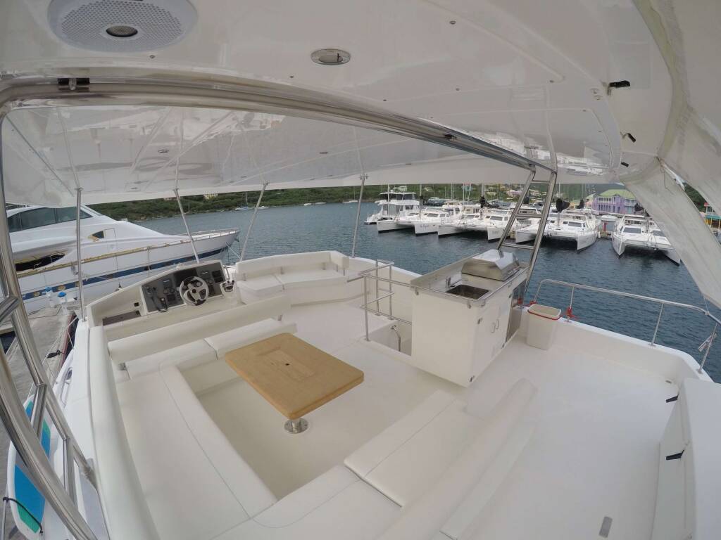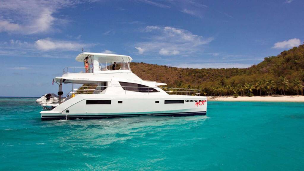 Luxus-Crew-Katamaran SOMEWHERE HOT, Baujahr 2019, liegt vor Anker in Caribbean Virgin Islands (BVI). Sie verfügt über 3 Kabinen und bietet Platz für 6 Personen.