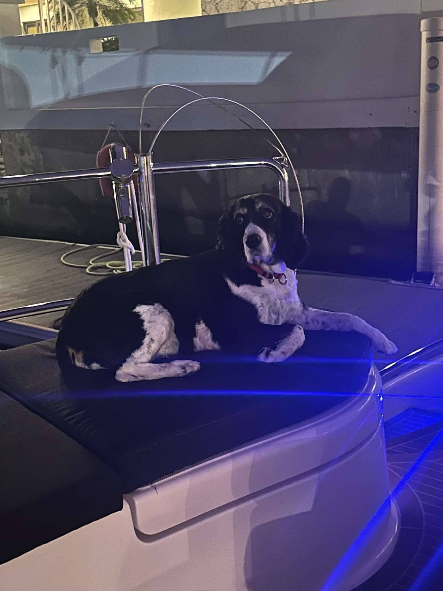 Clipped for comfort and minimal shedding, Stella blends right into the rhythm of yacht life and is always up for quiet companionship or belly rubs. Whether you’re a lifelong dog lover or simply enjoy a little four-legged company, Stella is sure to make your time aboard feel even more like home.