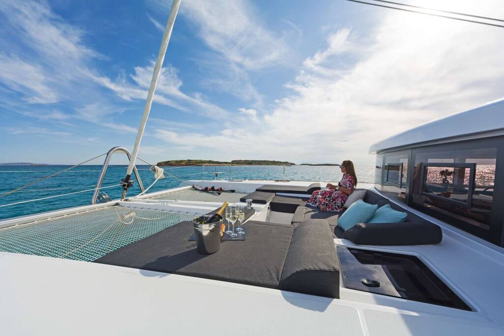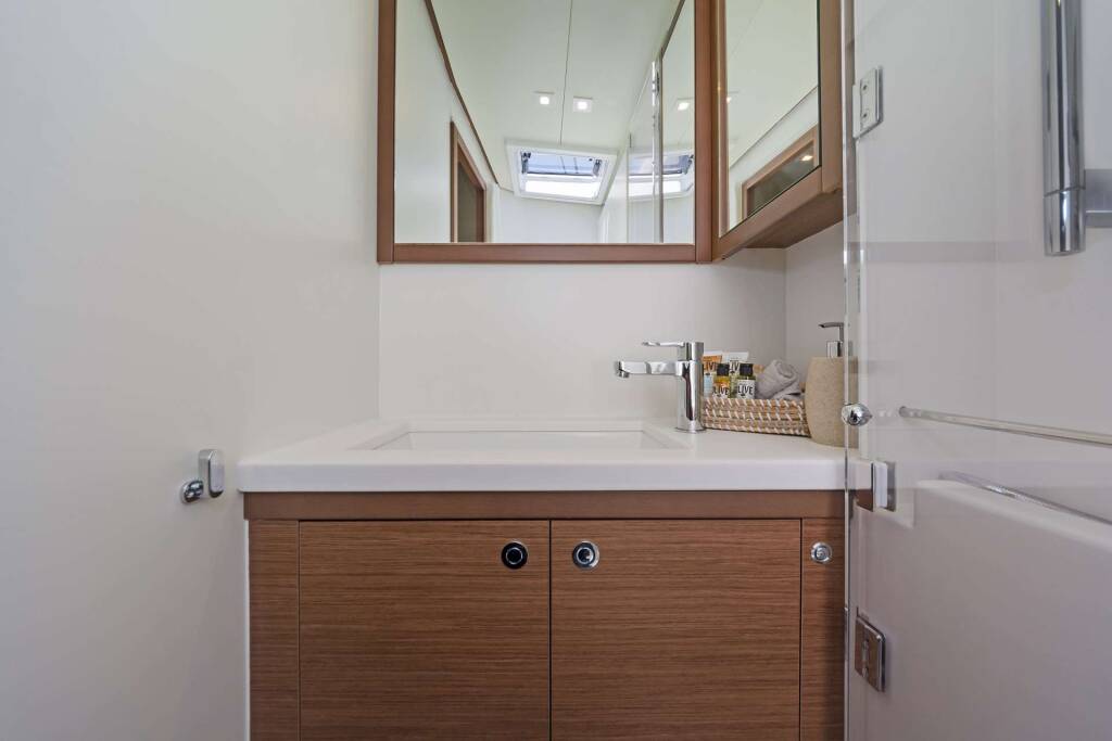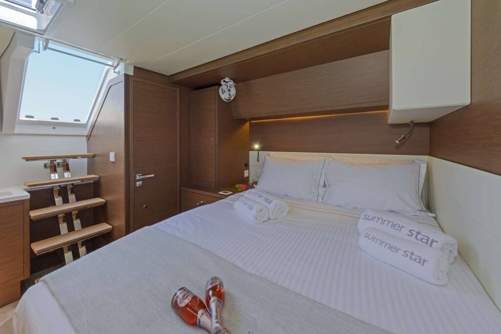 Luxus-Crew-Katamaran SUMMER STAR, Baujahr 2019, liegt vor Anker in Greece. Sie verfügt über 5 Kabinen und bietet Platz für 10 Personen.