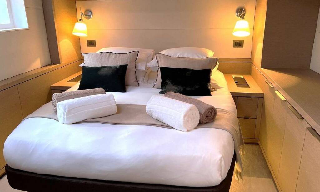 - 1 double cabin with private bathroom convertible into twin - located at aft port of the vessel - bed size 1,80 m x 2,05 m