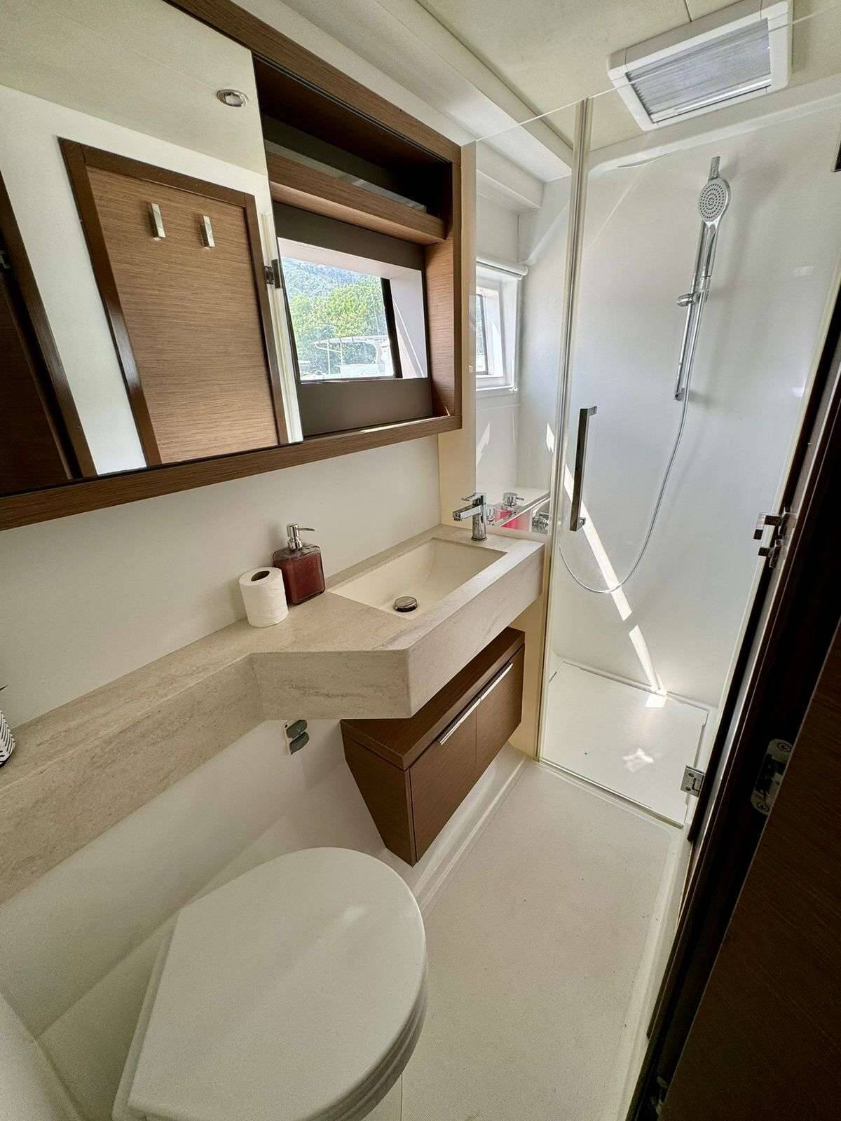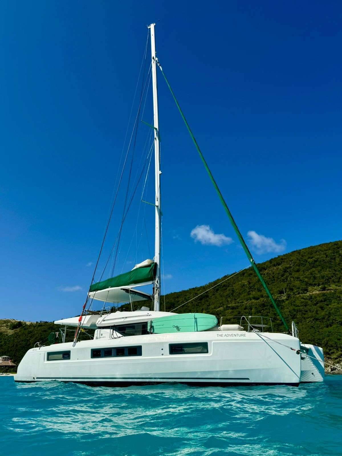 Luxus-Crew-Katamaran THE ADVENTURE, Baujahr 2020, liegt vor Anker in Caribbean Virgin Islands (BVI). Sie verfügt über 4 Kabinen und bietet Platz für 8 Personen.
