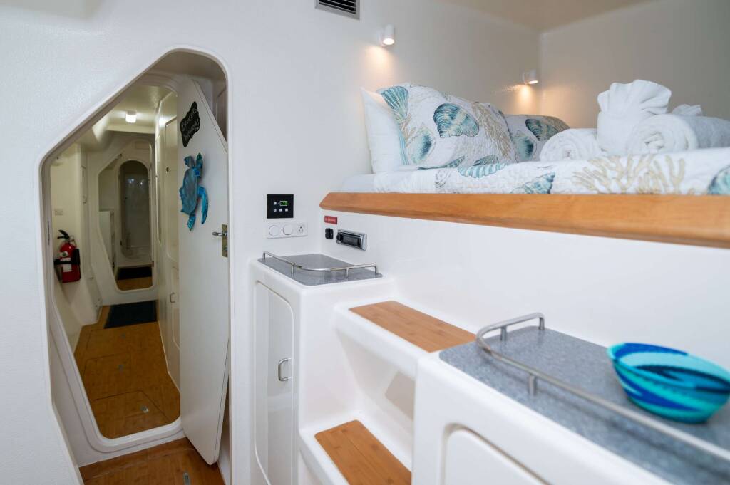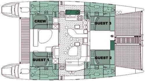 Accommodation: Listing pricing is for 3 ensuite queen cabins each with private bath with electric toilet and shower.