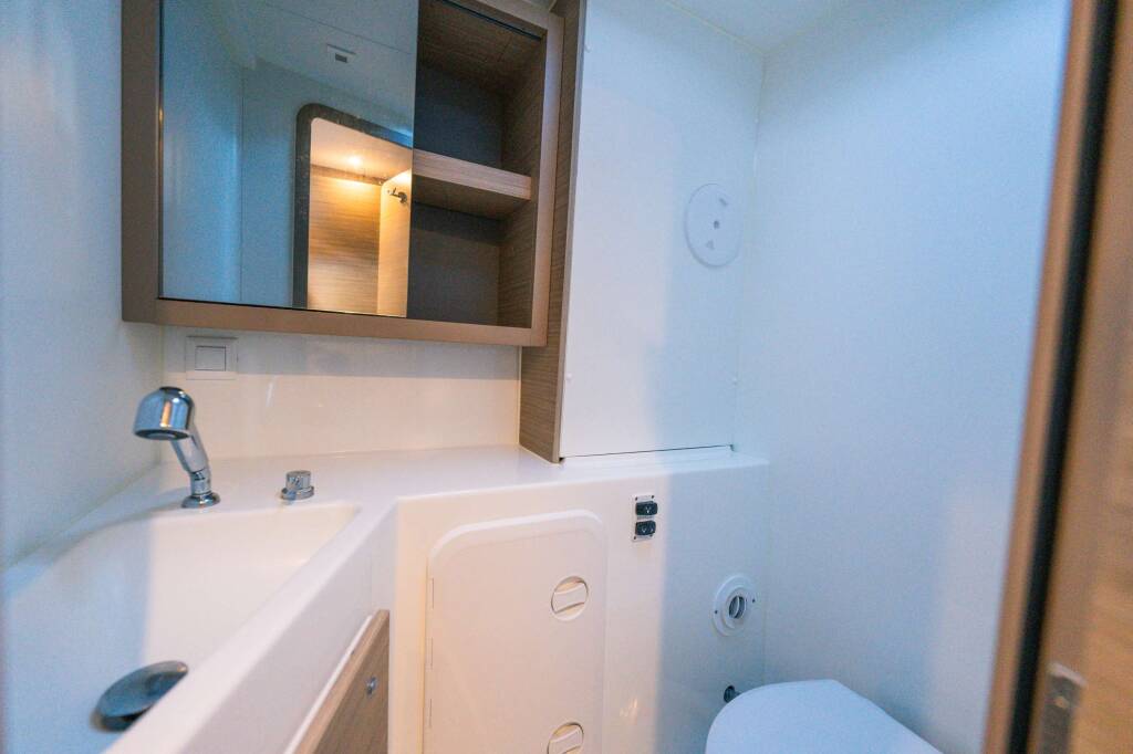 The skipper has its own cabin and bathroom.