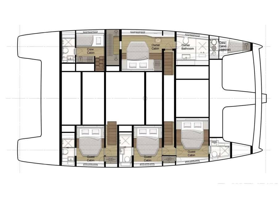 Baths: 4 heads / 4 showers — each cabin with a private head & shower