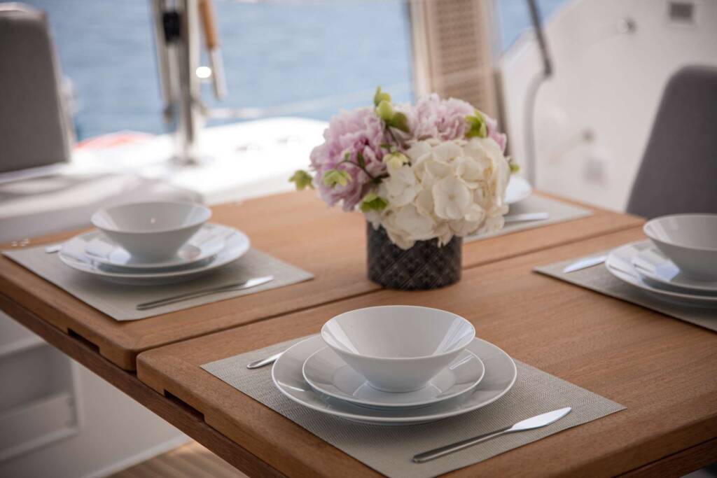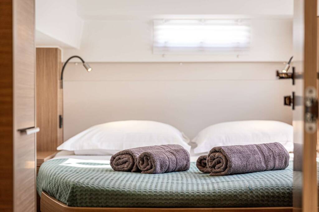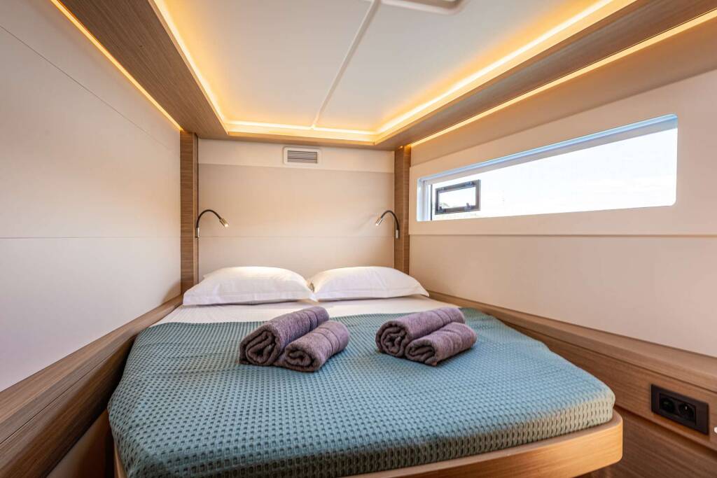 Luxus-Crew-Katamaran WINDEA, Baujahr 2025, liegt vor Anker in Greece. Sie verfügt über 4 Kabinen und bietet Platz für 8 Personen.