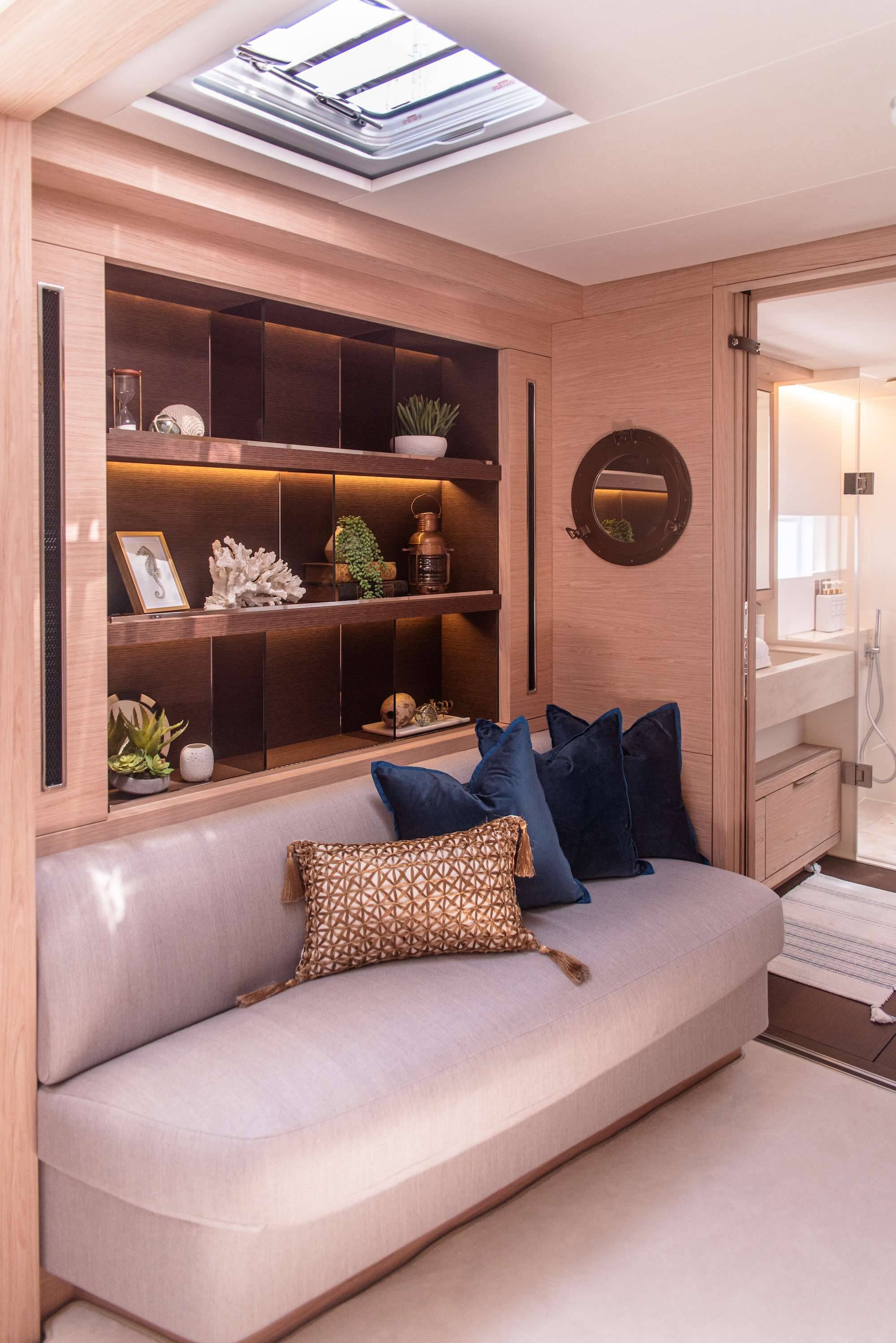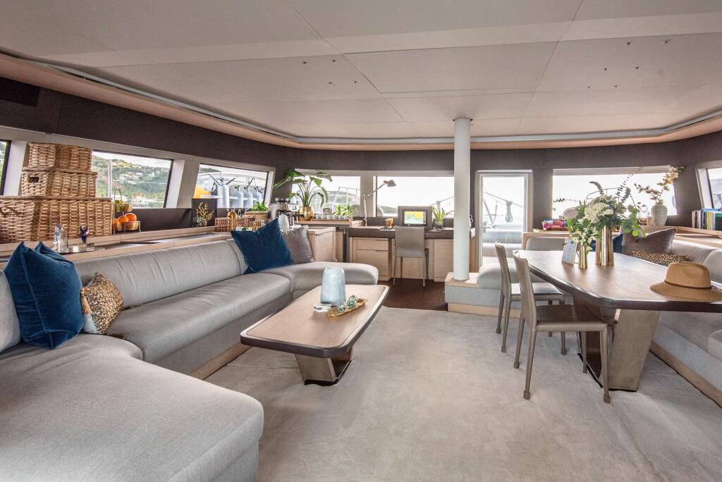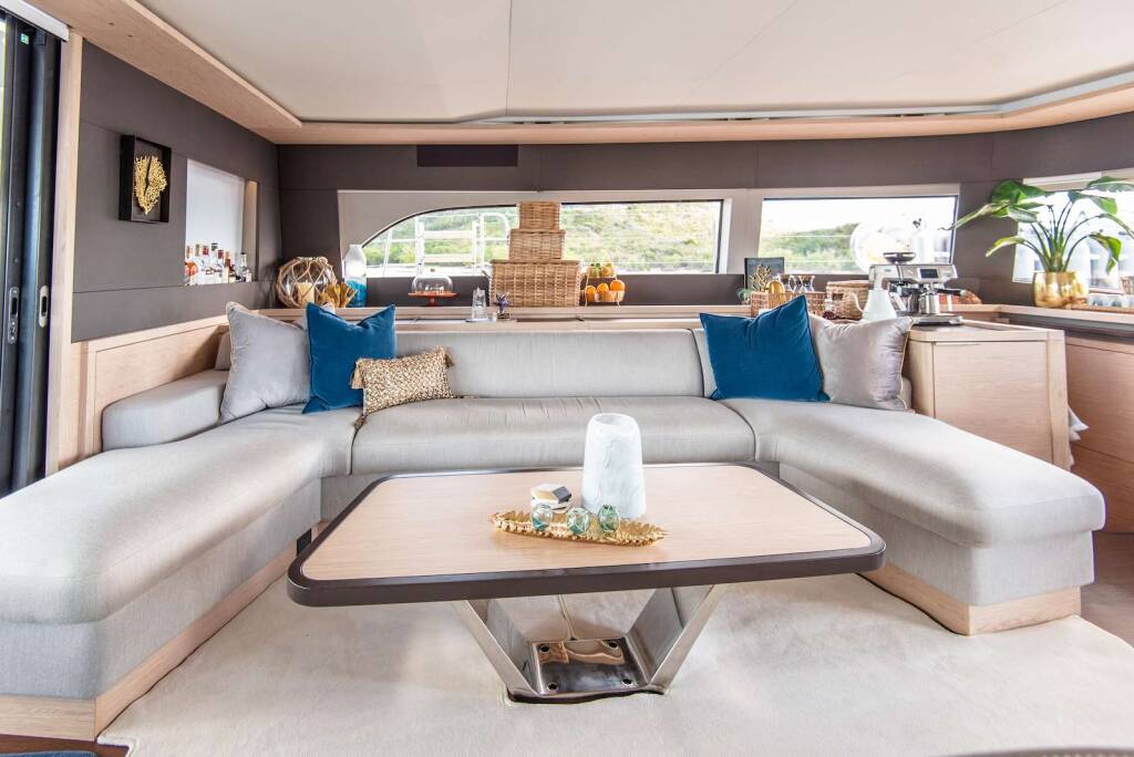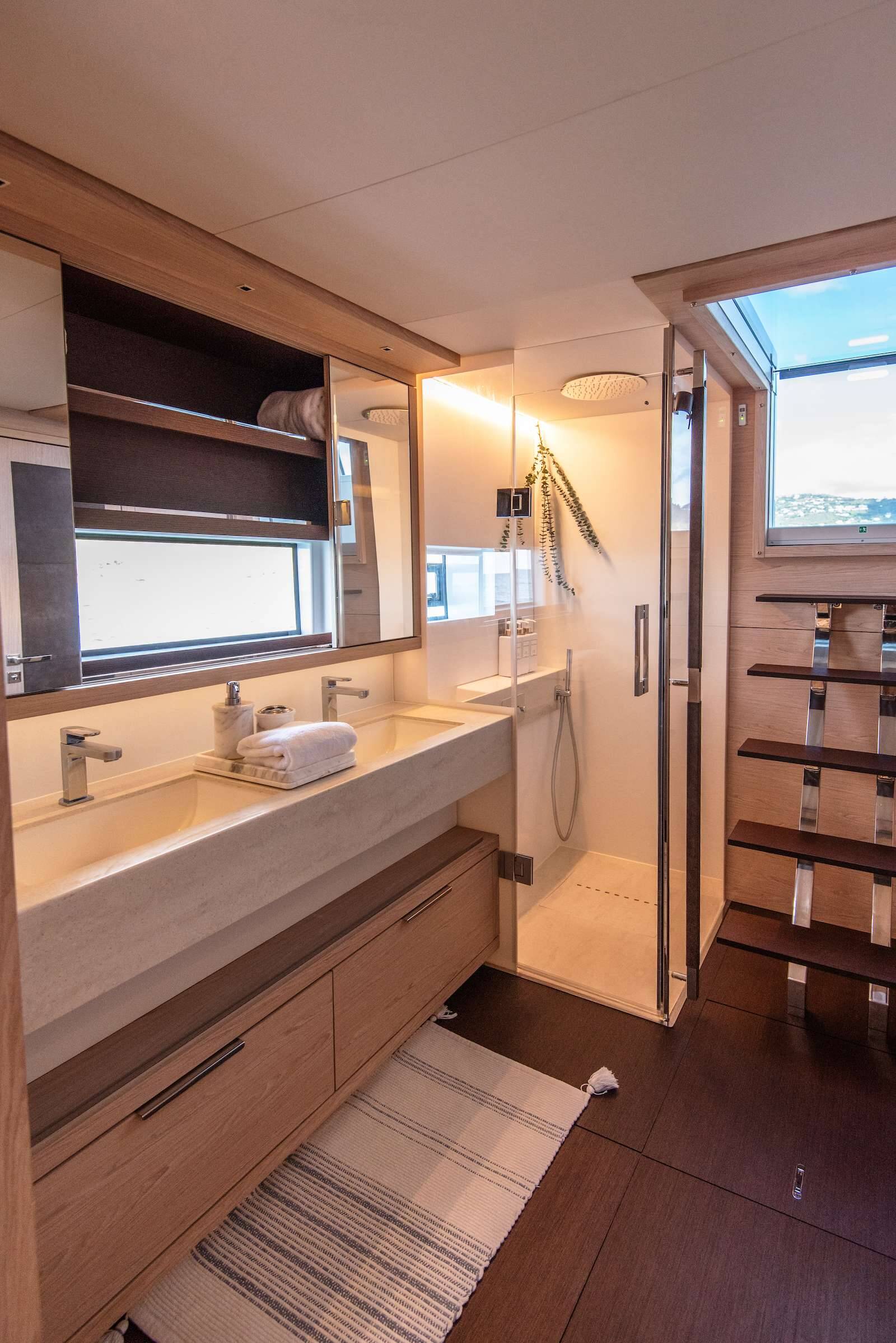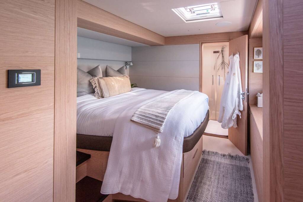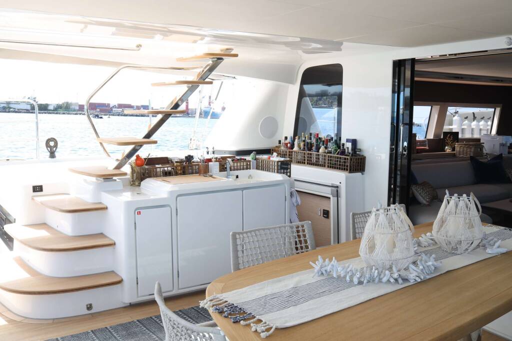 Luxus-Crew-Katamaran XANDROS, Baujahr 2021, liegt vor Anker in Caribbean Virgin Islands (US/BVI), Caribbean Leewards. Sie verfügt über 4 Kabinen und bietet Platz für 8 Personen.