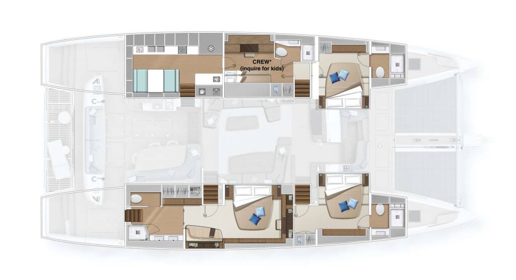 -The bunk room cabin is wall to wall with the galley and has a door to the galley in the cabin, which will be locked