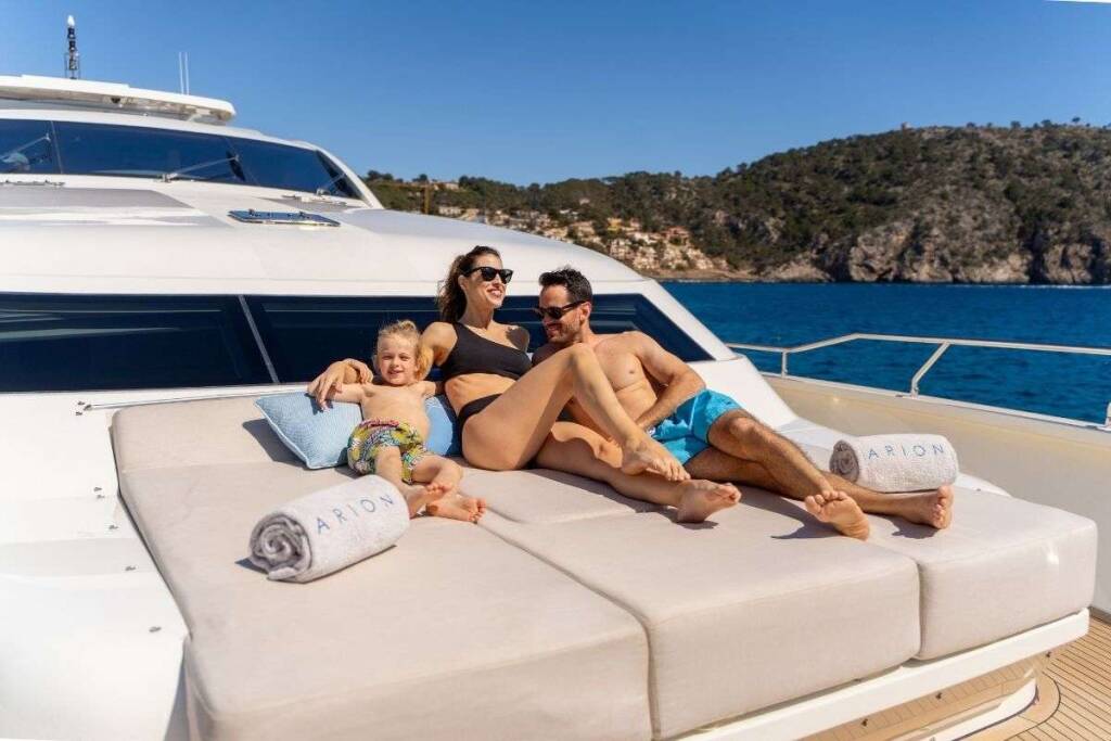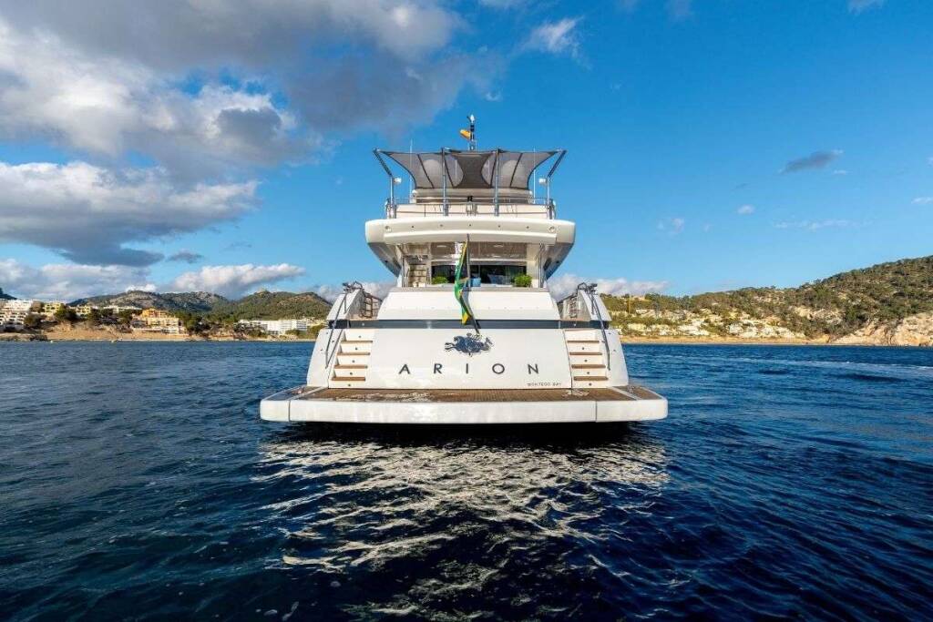 Luxus-Motoryacht ARION, Baujahr 2011, liegt vor Anker in W. Med -Naples/Sicily, W. Med -Riviera/Cors/Sard.. Sie verfügt über 4 Kabinen und bietet Platz für 9 Personen.
