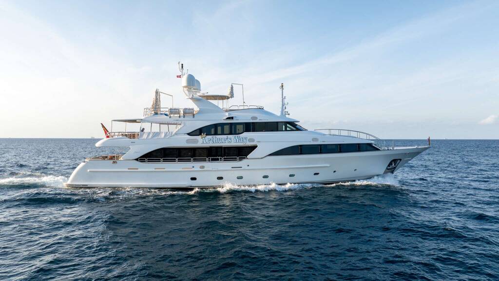 Luxus-Motoryacht ARTHUR'S WAY, Baujahr 2006, liegt vor Anker in . Sie verfügt über 5 Kabinen und bietet Platz für 10 Personen.