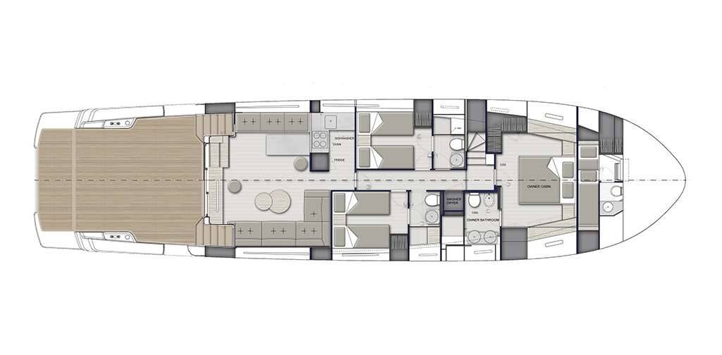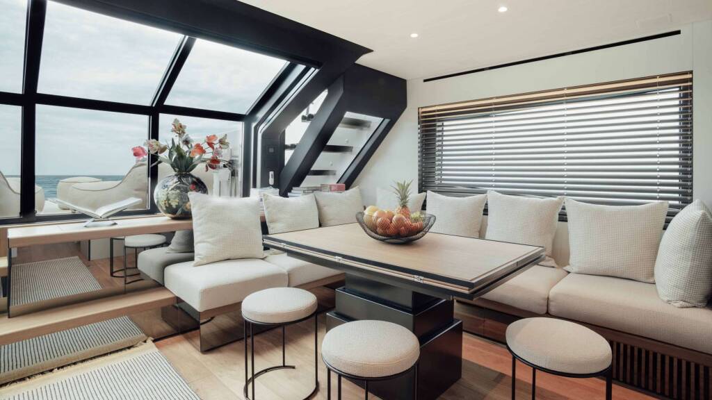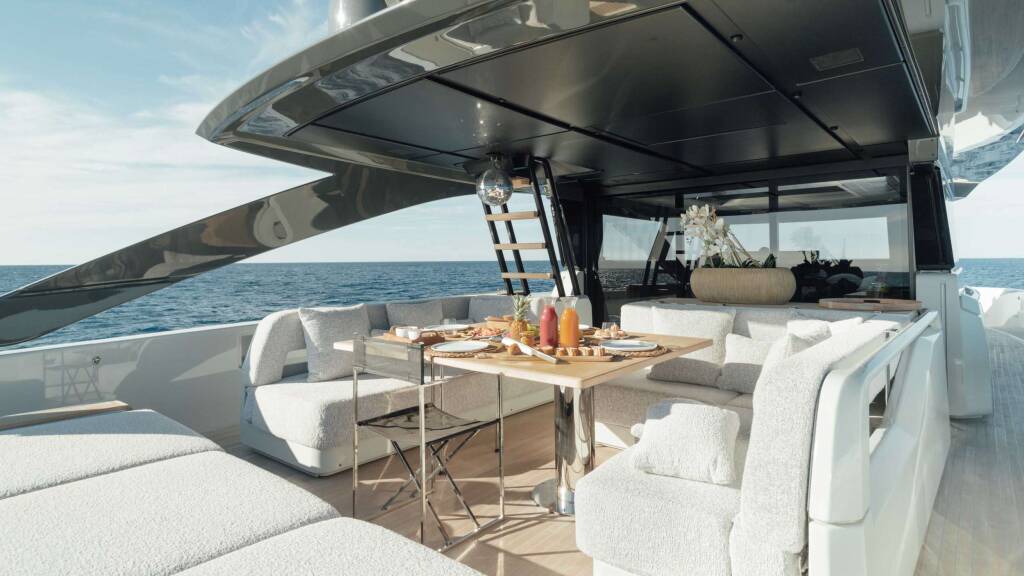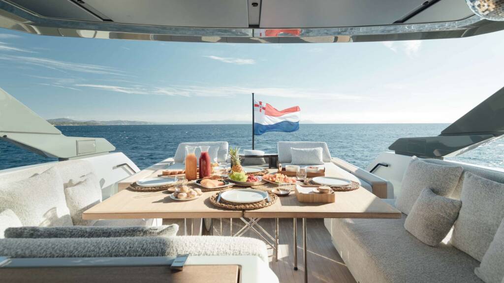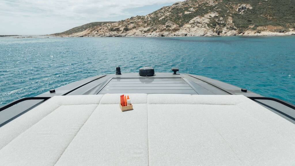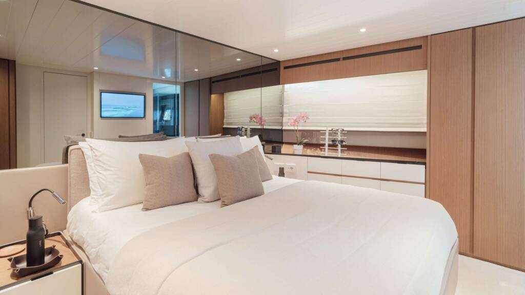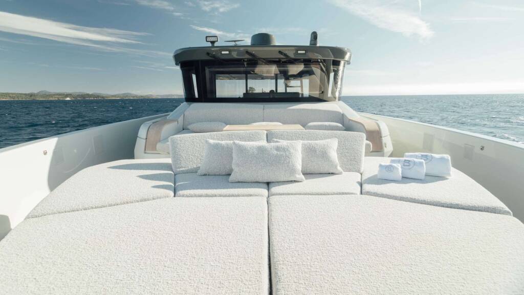 Luxus-Motoryacht BLUEGAME74, Baujahr 2023, liegt vor Anker in W. Med -Riviera/Cors/Sard., W. Med - Spain/Balearics. Sie verfügt über 3 Kabinen und bietet Platz für 6 Personen.