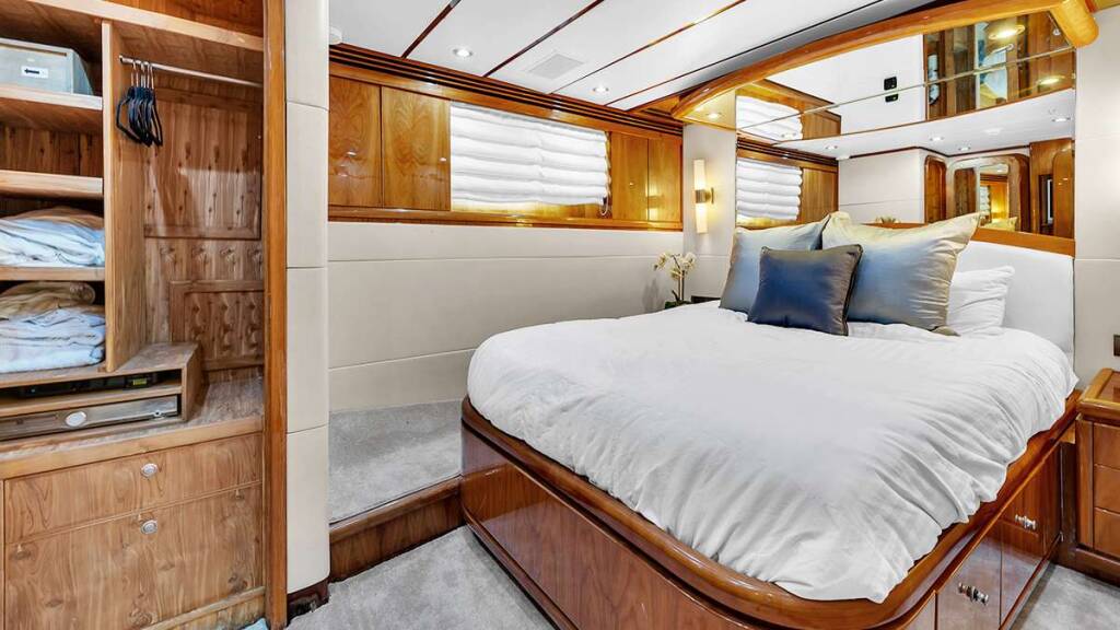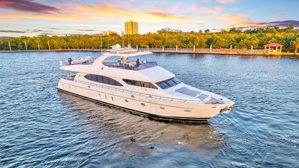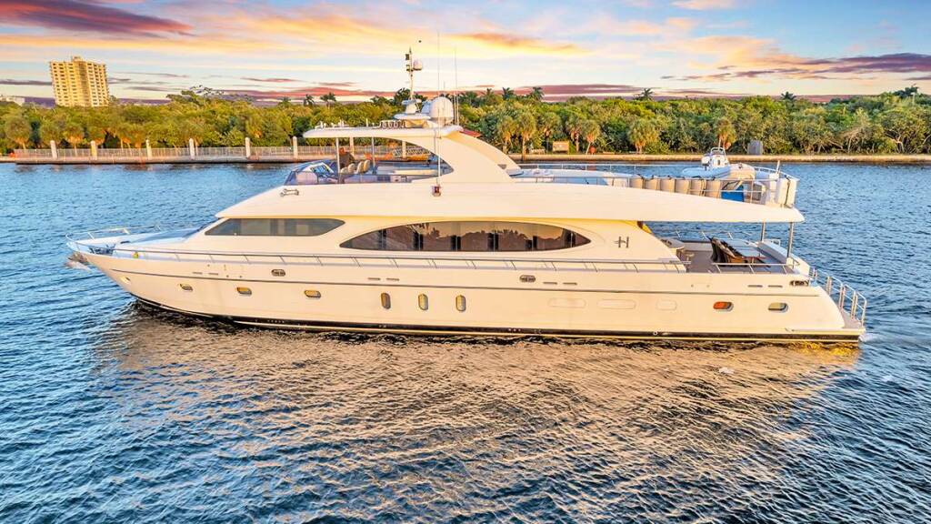 Luxus-Motoryacht Dream On, Baujahr 2006, liegt vor Anker in Bahamas, USA - Florida East Coast. Sie verfügt über 5 Kabinen und bietet Platz für 12 Personen.