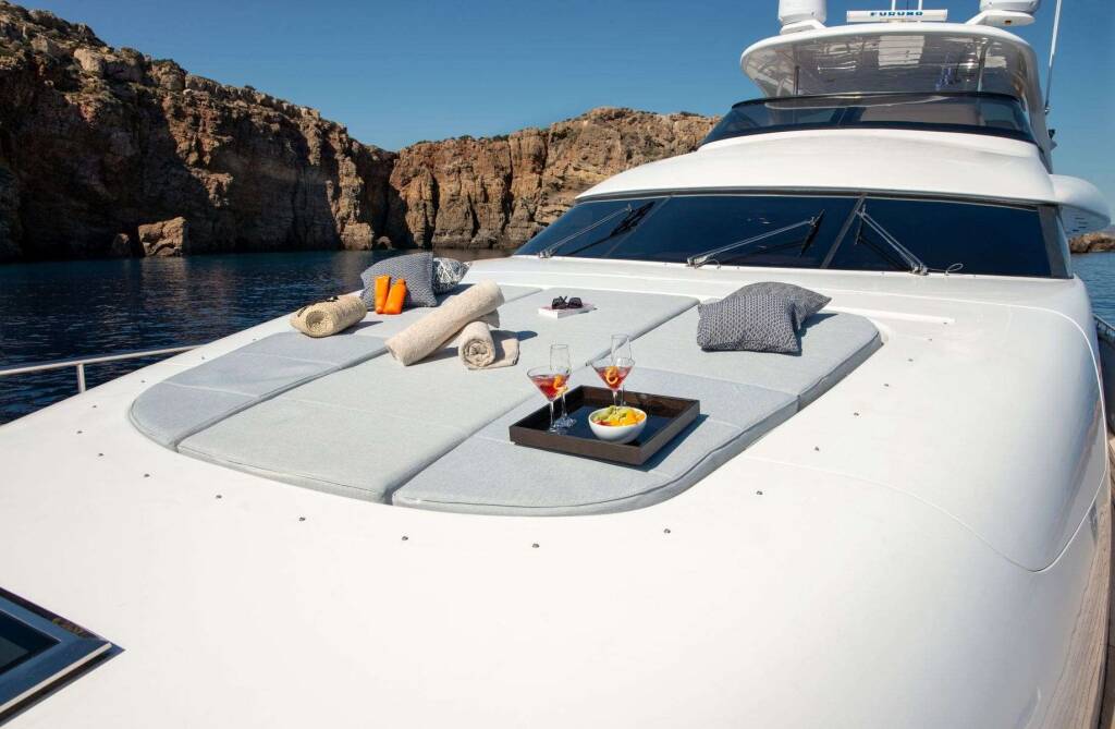 Luxus-Motoryacht EL PECADO, Baujahr 2014, liegt vor Anker in Greece. Sie verfügt über 4 Kabinen und bietet Platz für 9 Personen.