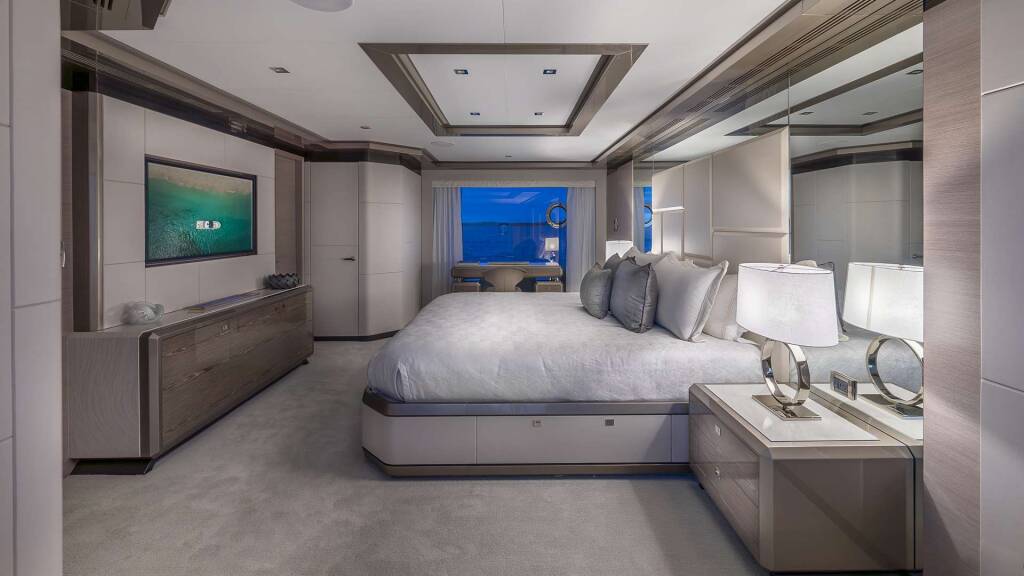 Accommodation: On deck master with king bed and large head including his and her sinks, stand alone tub and shower with skylight.