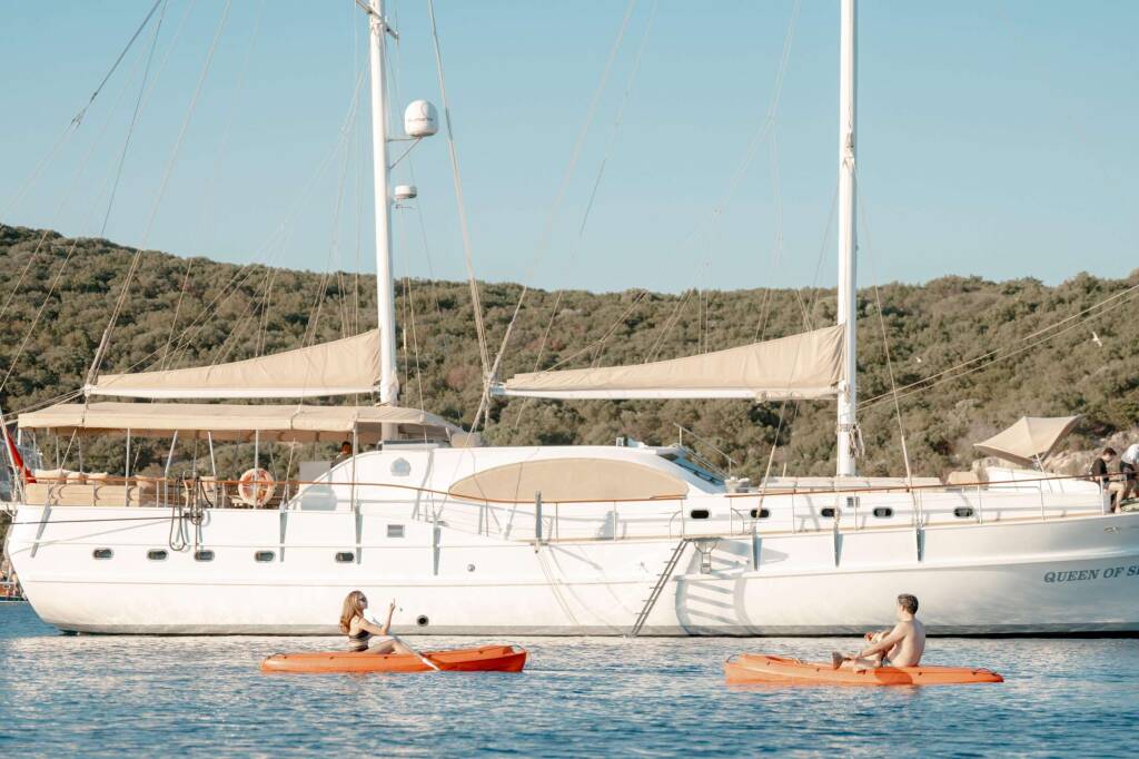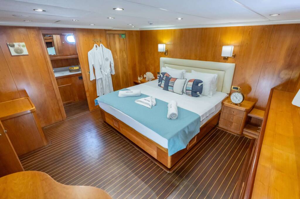 Motor Gulet Yacht Queen of Sea is a 29 meter luxury gulet that underwent a full renovation in 2025. Offering a refined yachting experience in Turkey and the Greek Islands, she combines elegant design with modern comfort. The yacht accommodates up to 10 guests in five well appointed cabins, including two master cabins, two double cabins, and one twin cabin. Each cabin is equipped with a private bathroom and 24 hour air conditioning, ensuring a comfortable stay throughout the journey. Queen of Sea usually departs from Bodrum, with the flexibility to start from other ports depending on availability. A professional crew of five provides attentive service and ensures smooth sailing. Guests can enjoy a spacious indoor salon with dining and lounging areas, sunbathing decks, and Wi-Fi connectivity. The yacht also includes water toys such as paddleboards, canoes, and snorkeling gear, perfect for making the most of time spent in quiet bays and turquoise waters. Whether relaxing under the sun, swimming in crystal clear seas, or enjoying meals on deck, Queen of Sea offers a peaceful and luxurious escape for those who wish to explore the Aegean and Mediterranean coasts in style.