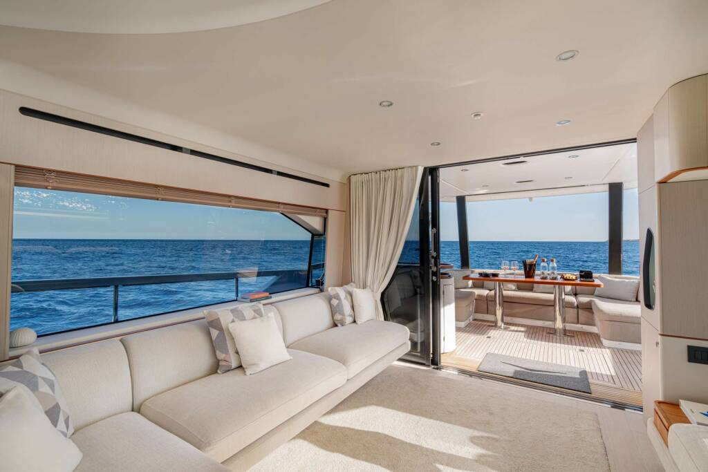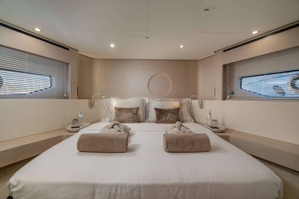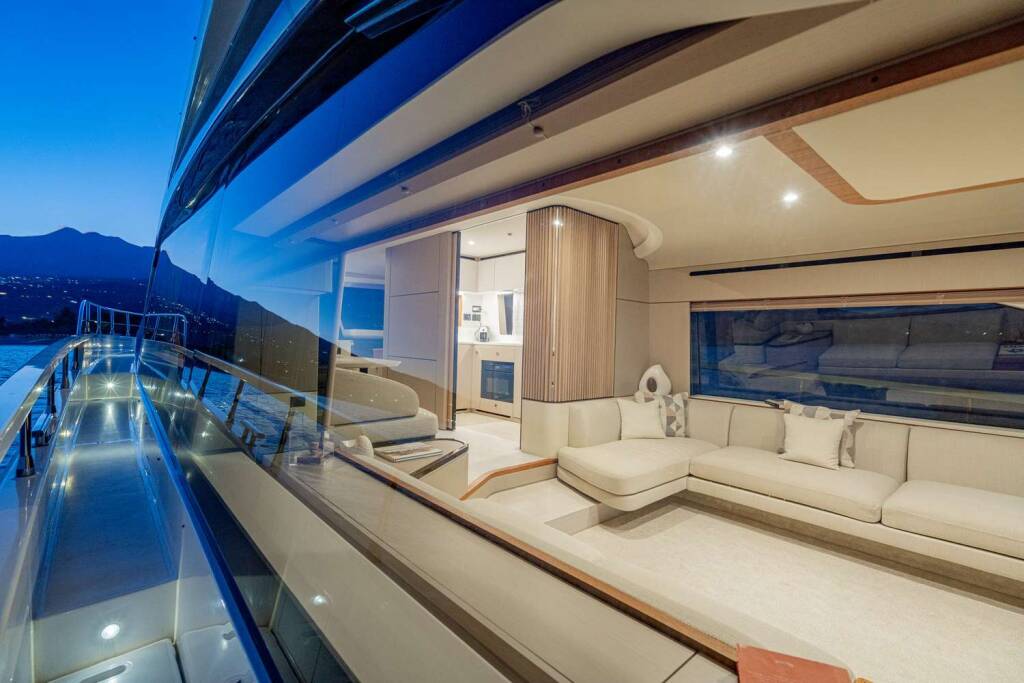 Luxus-Motoryacht SBK, Baujahr 2024, liegt vor Anker in W. Med -Naples/Sicily. Sie verfügt über 4 Kabinen und bietet Platz für 8 Personen.