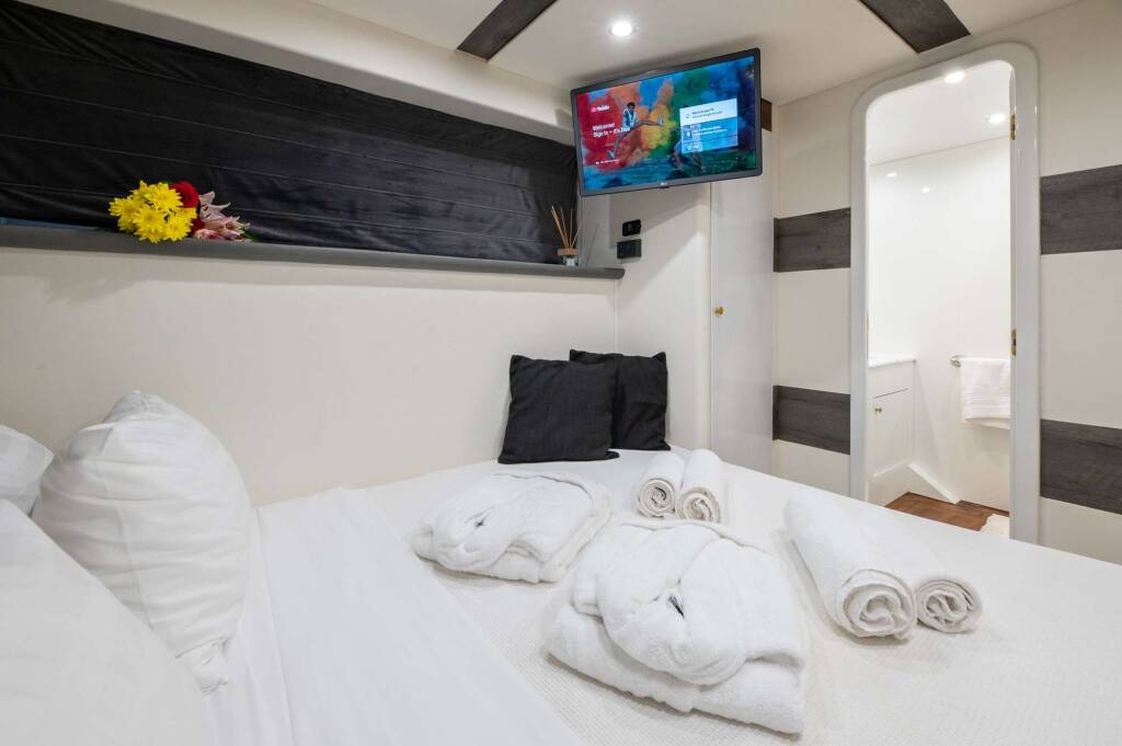 Other Entertainment: Plasma TV in Salon, Master & VIP Cabins, Home theatre in Master Cabin. TV 49'' in the Master cabin, TV 32'' in VIP, in King & in Twin cabin.