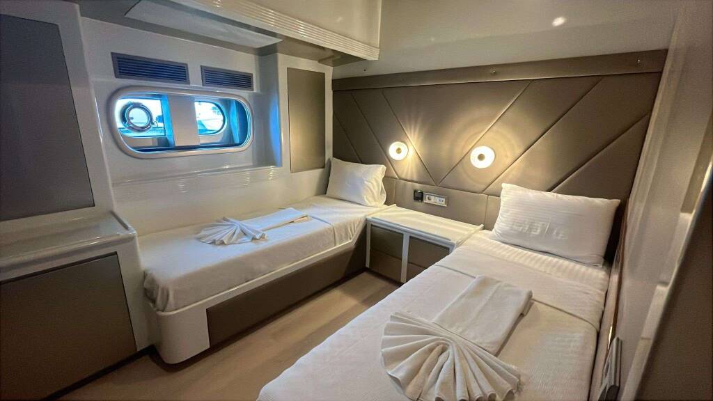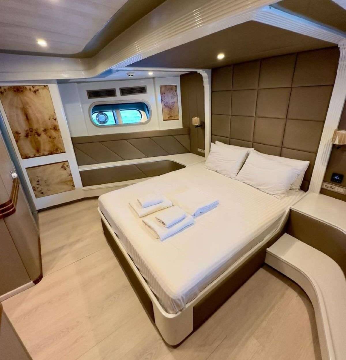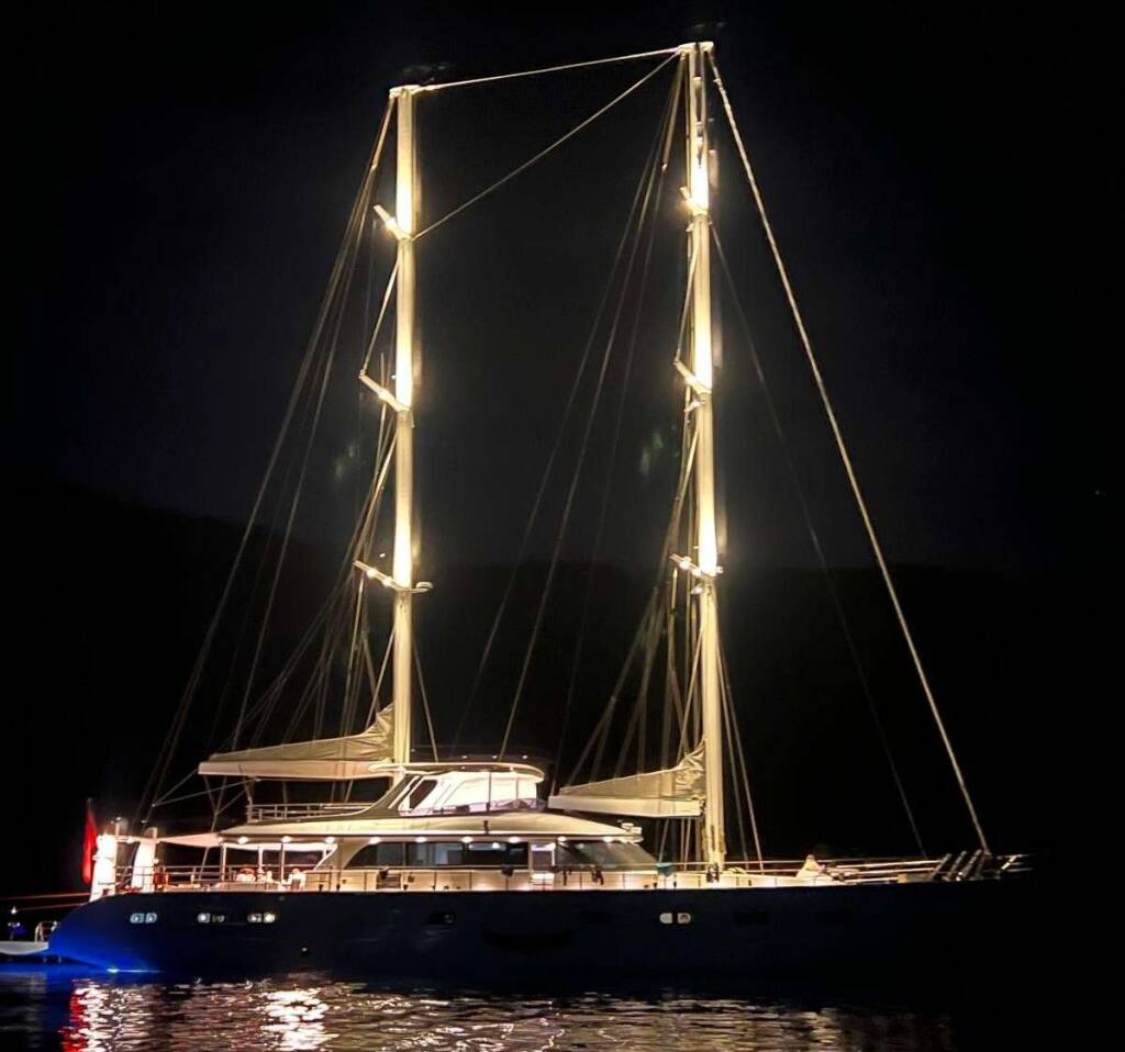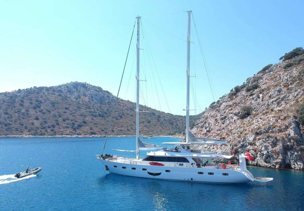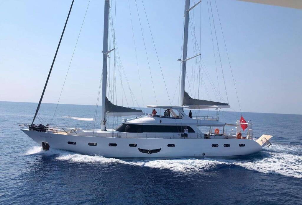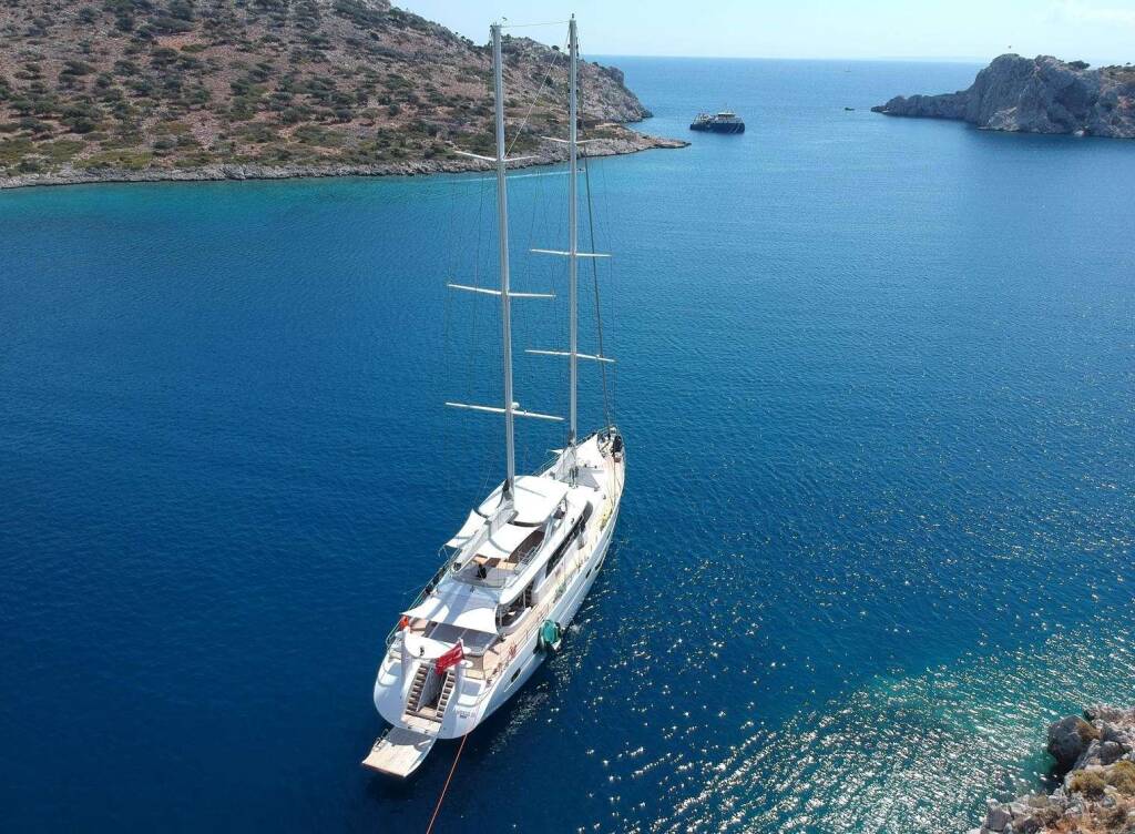 Luxus-Segelyacht ANGELO III, Baujahr 2024, liegt vor Anker in Turkey. Sie verfügt über 5 Kabinen und bietet Platz für 10 Personen.
