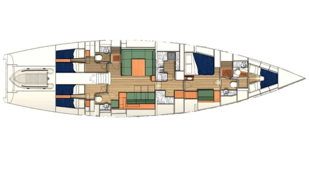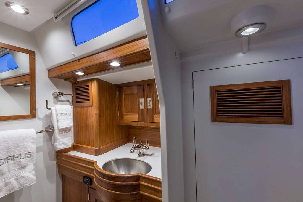 Accommodation: Cirrus accommodates 6 pax in 3 queen cabins. Forward of the galley is the master, with a queen berth and a comfortable sofa. There is a lot of storage for guests and the head is large for a vessel of this size. The shower is oversized as well and separate.