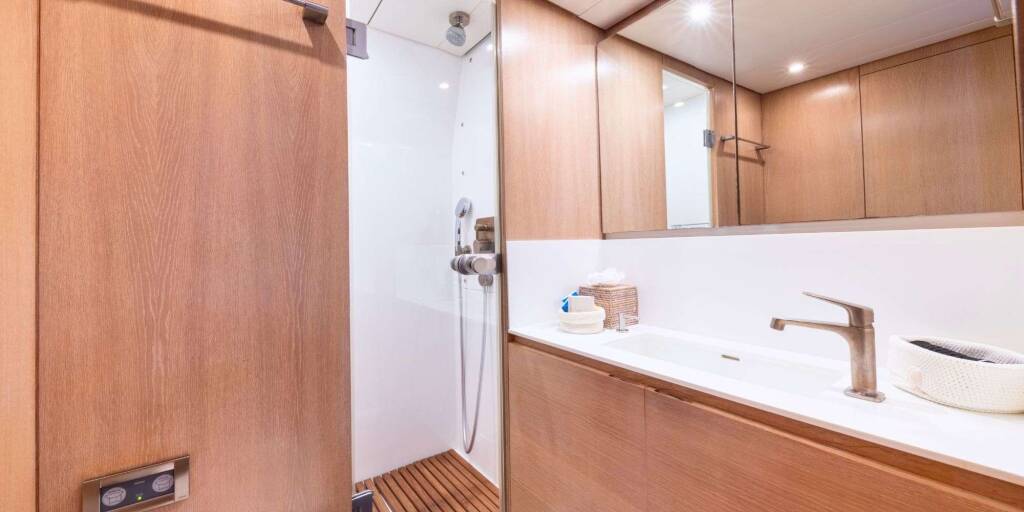 Luxus-Segelyacht YCH2, Baujahr 2009, liegt vor Anker in Greece. Sie verfügt über 4 Kabinen und bietet Platz für 6 Personen.