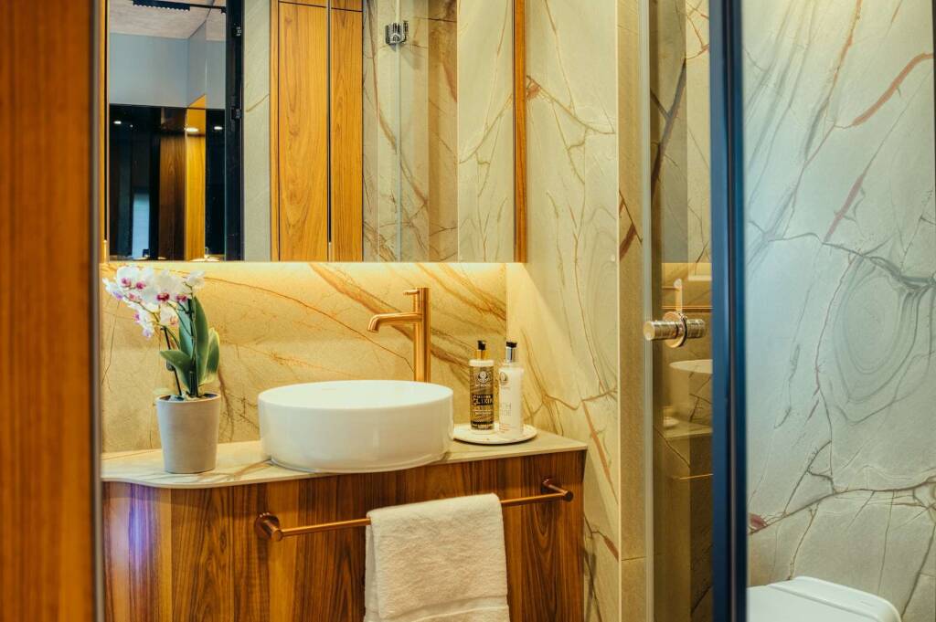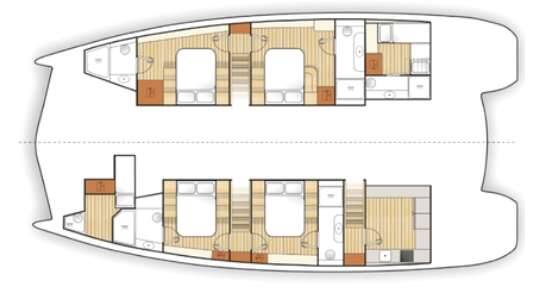 1 owner's cabin, 1 VIP cabin, 2 guest cabins , each with private bathroom