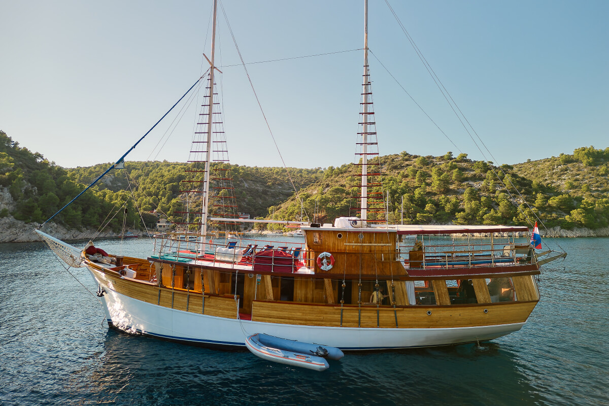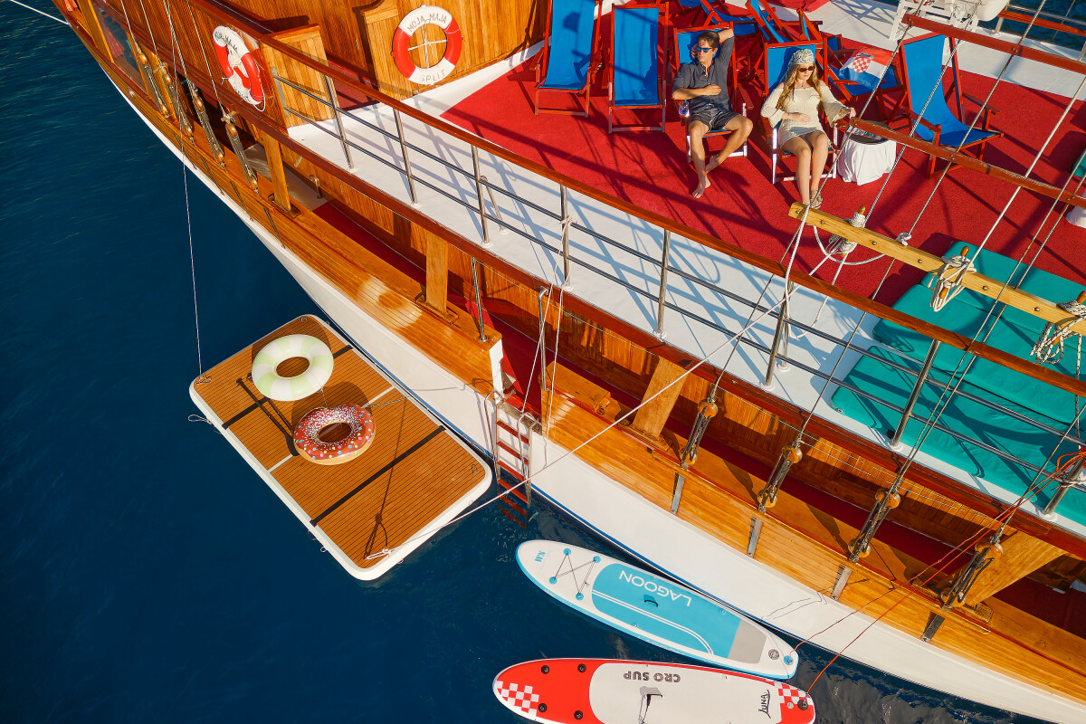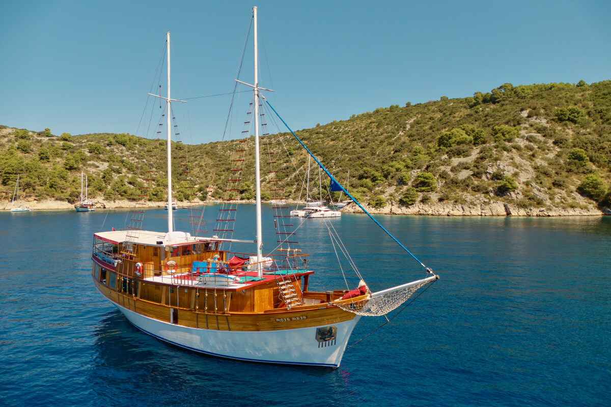 The Moja Maja is a charming vessel ideal for private charters, offering a perfect blend of comfort, intimacy, and authentic Adriatic charm. Measuring 24 meters in length and 6.8 meters in width, the ship provides plenty of space for relaxing and enjoying Croatia’s stunning coastline. Its spacious 90 m² sun deck is perfect for sunbathing, socializing, or simply taking in the breathtaking Adriatic views.