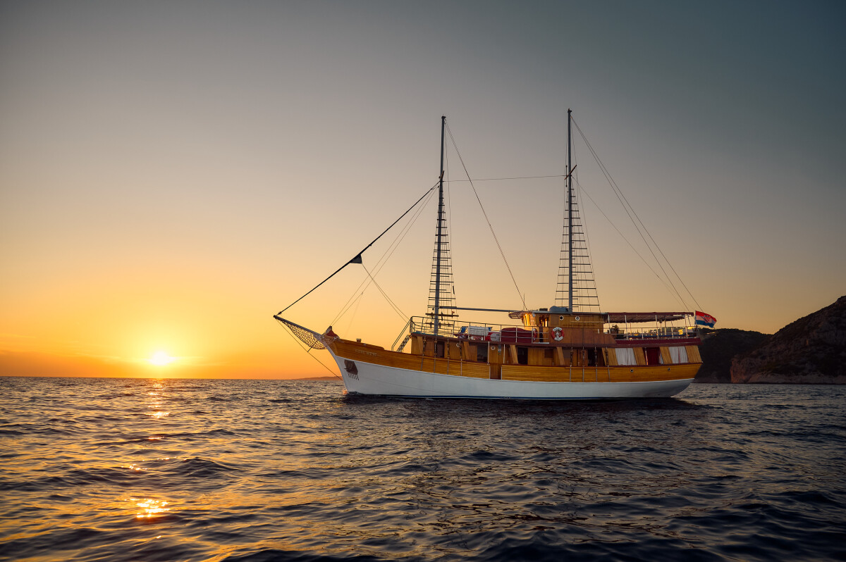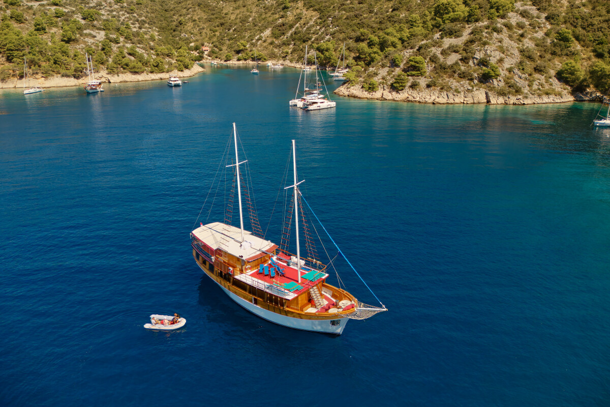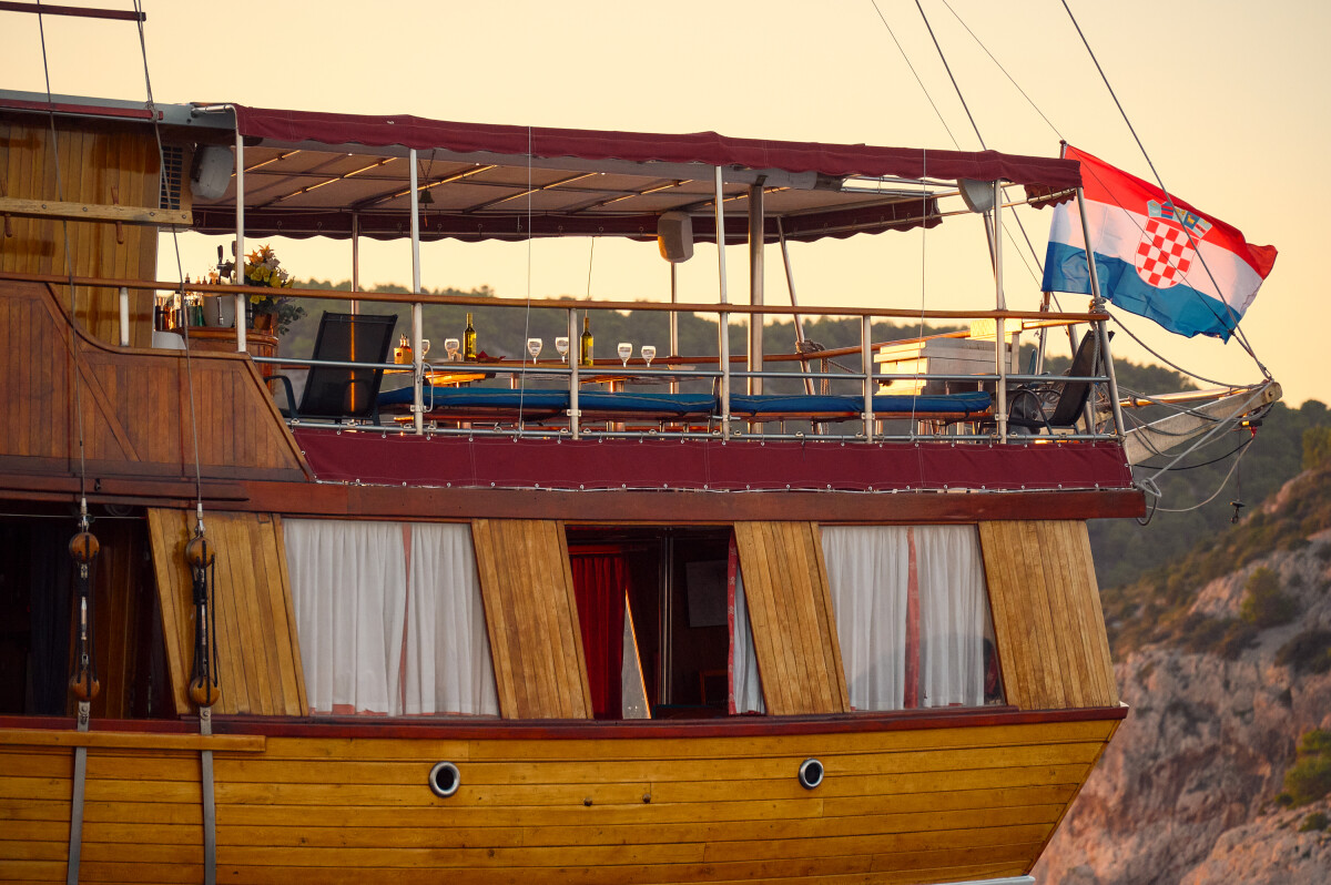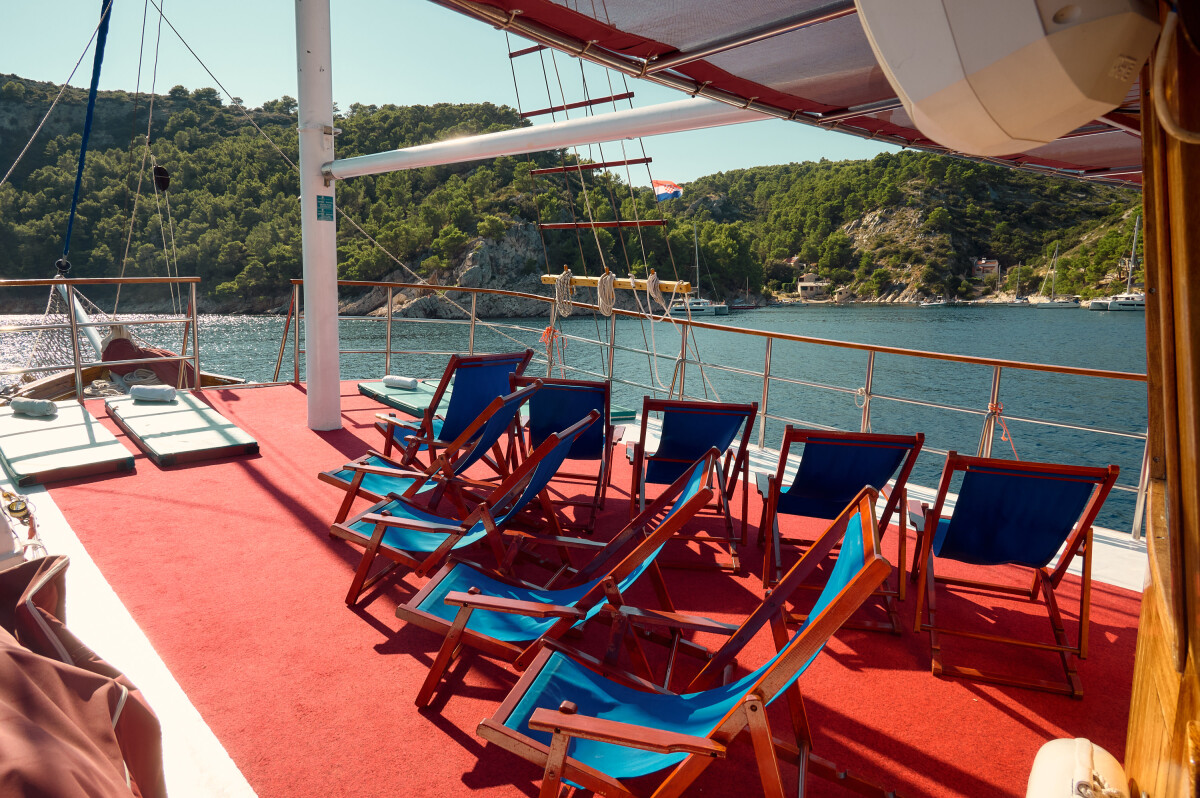 The Moja Maja is a charming vessel ideal for private charters, offering a perfect blend of comfort, intimacy, and authentic Adriatic charm. Measuring 24 meters in length and 6.8 meters in width, the ship provides plenty of space for relaxing and enjoying Croatia’s stunning coastline. Its spacious 90 m² sun deck is perfect for sunbathing, socializing, or simply taking in the breathtaking Adriatic views.