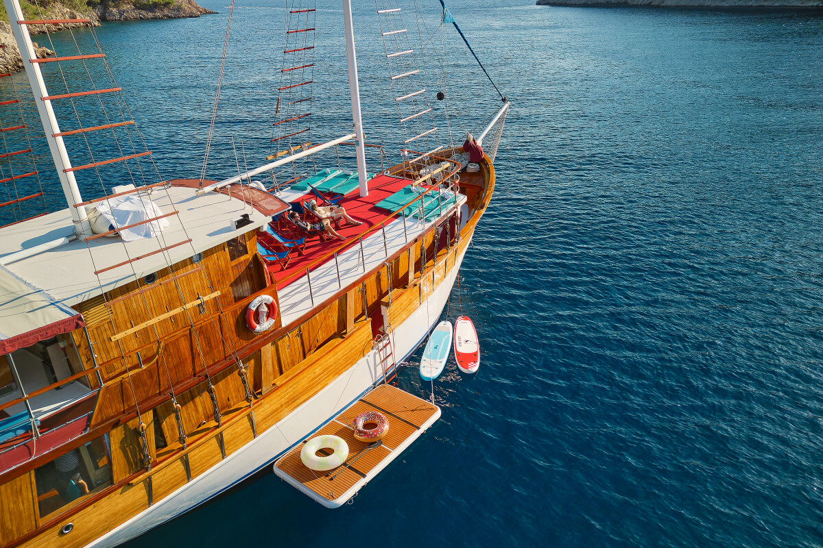 Port fees, anchorages or private marina fees are to be paid on the spot according to the actual costs in each port/anchorage (in cash). This cost depends on the selected itinerary/ports of call. The gulet doesn’t need to be in port or marina each day; the gulet can also be anchored, which reduces the mooring fees (estimated 1.000 € - 2.000 € per week, have to be paid in cash on the boat) - Payable at the base