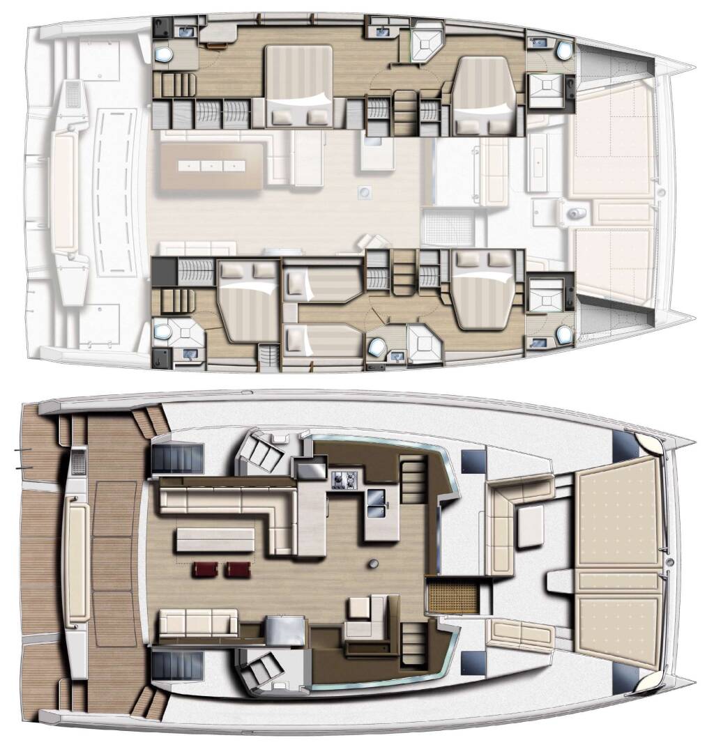 Main deck has a bright and airy main salon (fully air-conditioned) as the galley direct access to the forward cockpit lounge area.