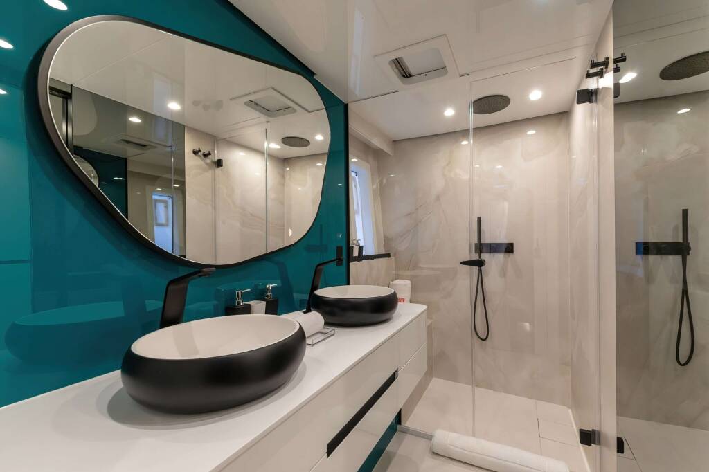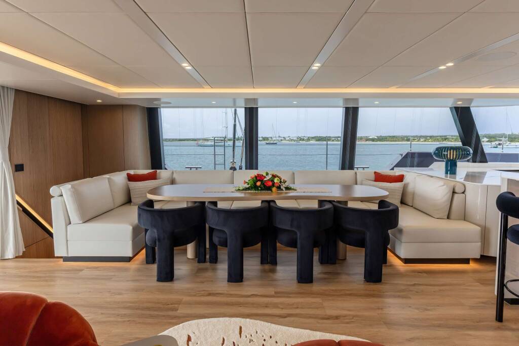 Luxury Crewed Catamaran Belldia, built in 2025 is anchored in the W. Med -Riviera/Cors/Sard.. It has 4 cabins, can accommodate 8 people.