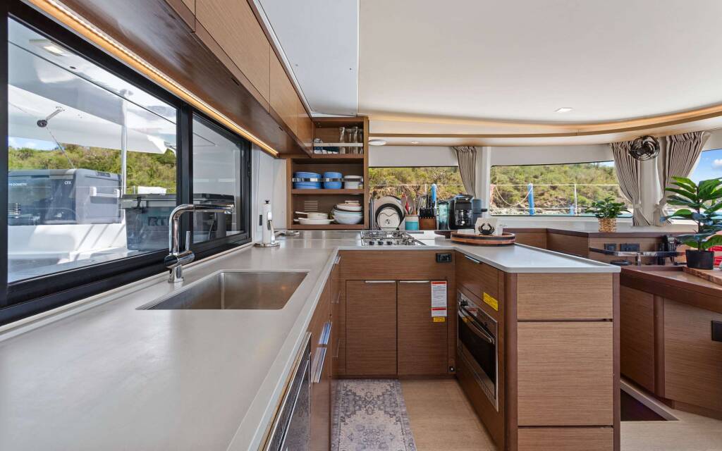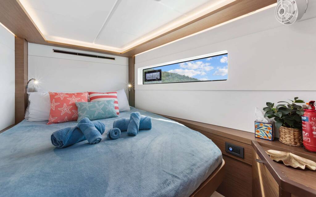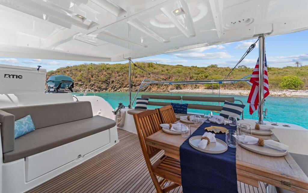 Luxury Crewed Catamaran OCEANS 8, built in 2021 is anchored in the Caribbean Virgin Islands (US/BVI), Caribbean Virgin Islands (US). It has 3 cabins, can accommodate 6 people.