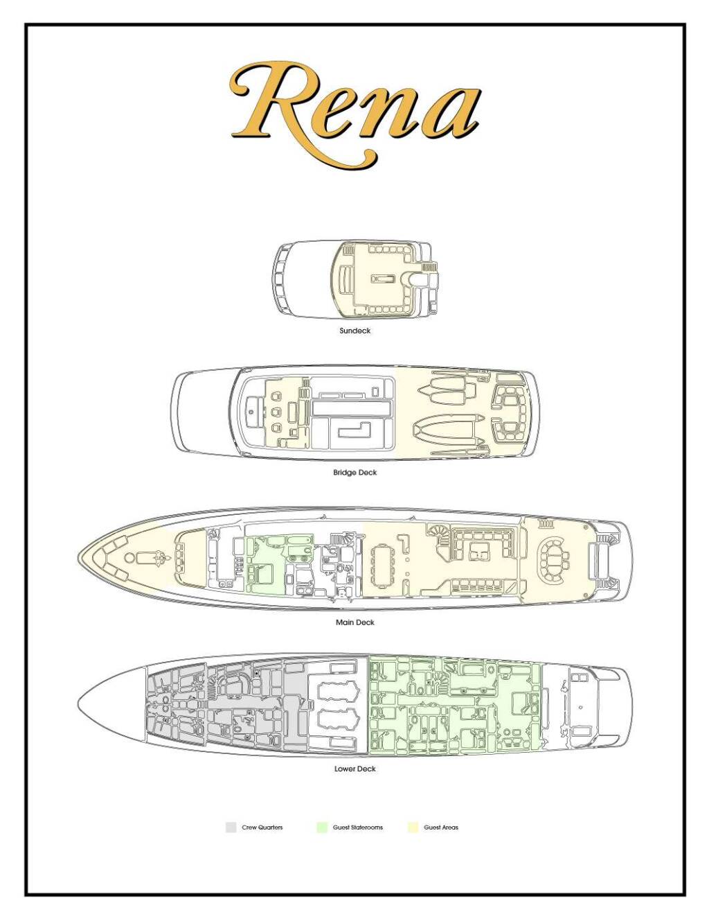 Accommodation: Accommodations: 10 to 12 Guests in 5 Staterooms: Two Kings, three Queens, three Twins and two Pullmans.