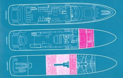 Accommodation: One Master cabin with a King size bed and a walk in closet on main deck