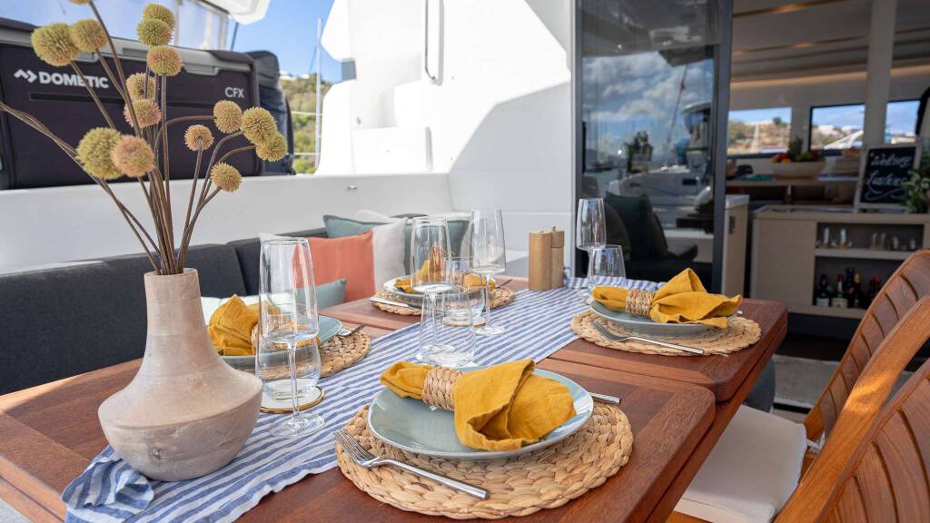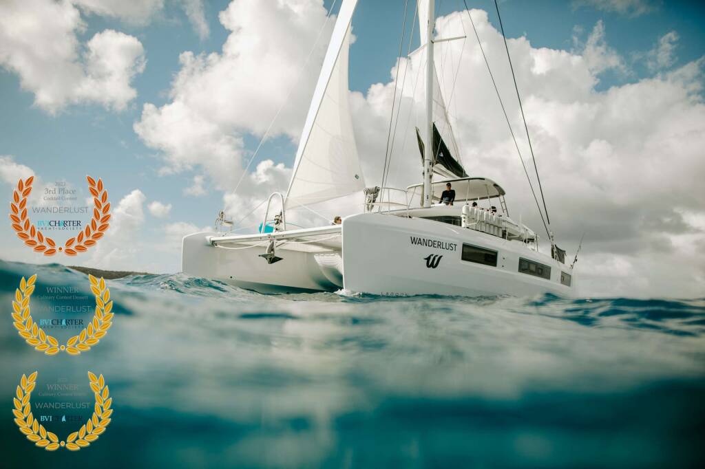 Luxury Crewed Catamaran WANDERLUST, built in 2022 is anchored in the Caribbean Virgin Islands (US/BVI), Caribbean Leewards. It has 4 cabins, can accommodate 8 people.