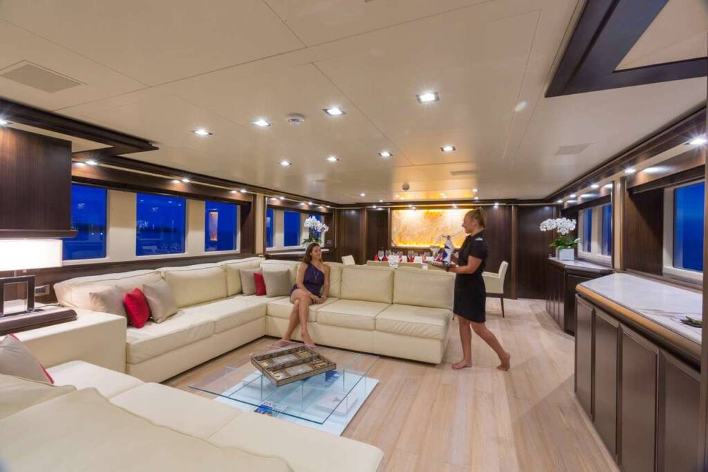 Luxury motor yacht GATSBY, built in 2014 is anchored in the W. Med -Naples/Sicily, W. Med -Riviera/Cors/Sard.. It has 6 cabins, can accommodate 12 people.