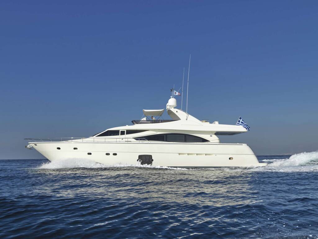 Luxury motor yacht JULIE M, built in 2008 is anchored in the Greece. It has 4 cabins, can accommodate 8 people.