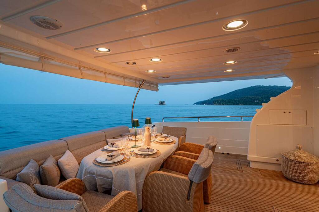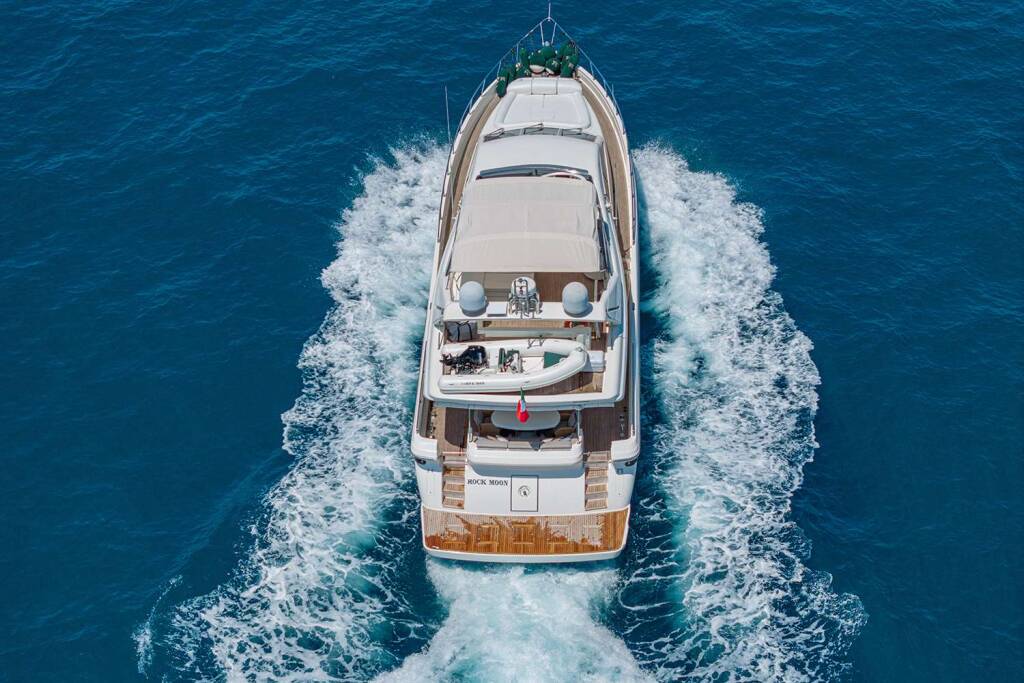 Luxury motor yacht Rock Moon, built in 2004 is anchored in the W. Med -Naples/Sicily, W. Med -Riviera/Cors/Sard.. It has 4 cabins, can accommodate 8 people.