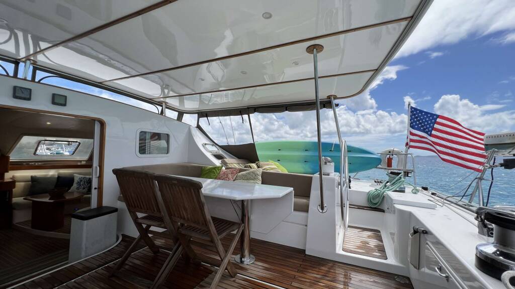 Catamarán de lujo con tripulación Ad Astra Lagoon 57, construido en 1998, está anclado en Caribbean Virgin Islands (BVI). Tiene 4 camarotes y puede alojar a 6 personas.