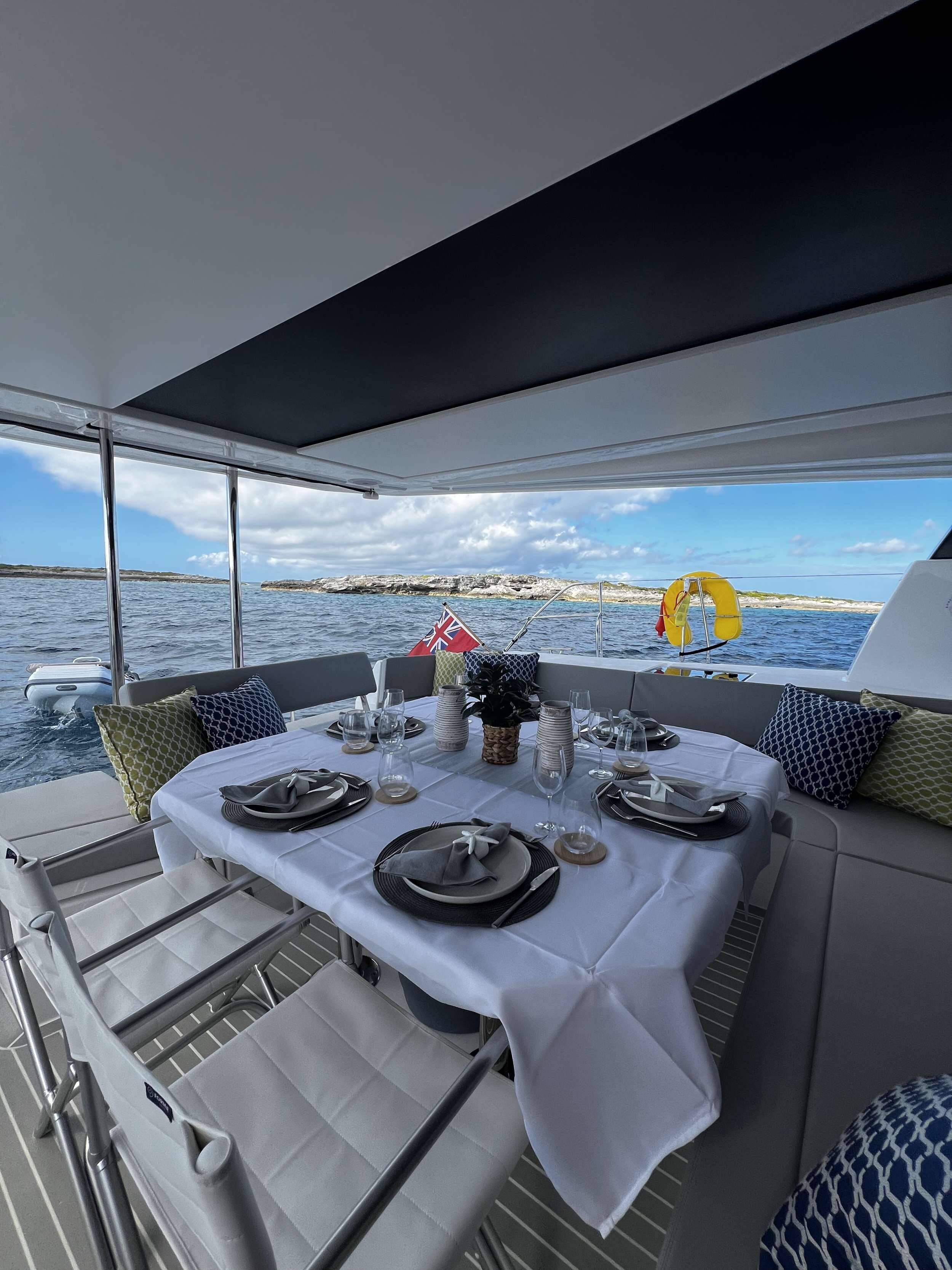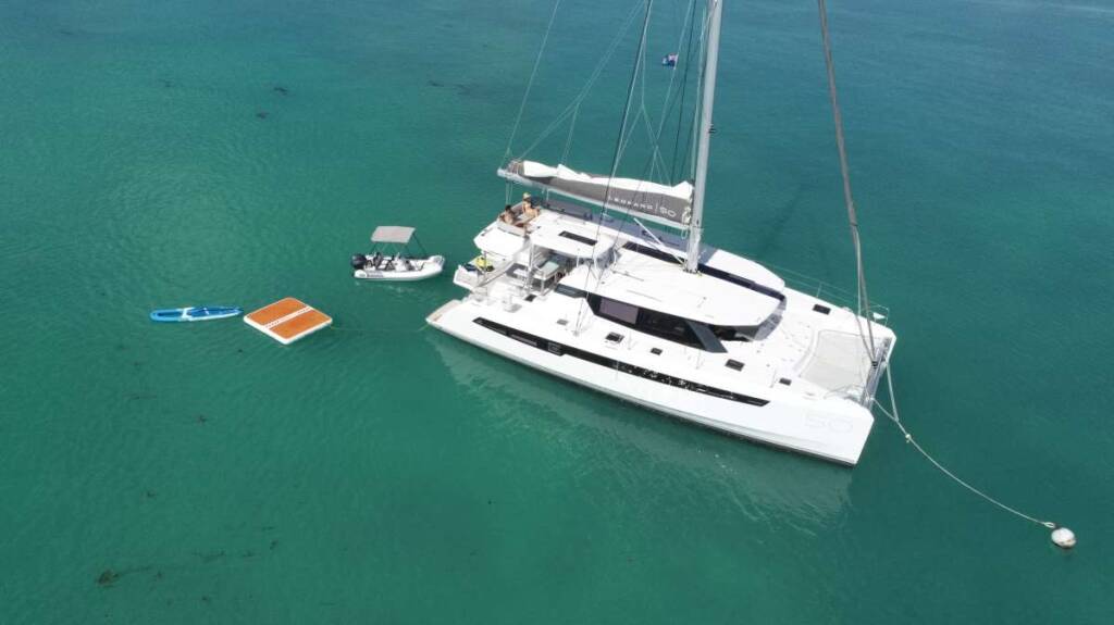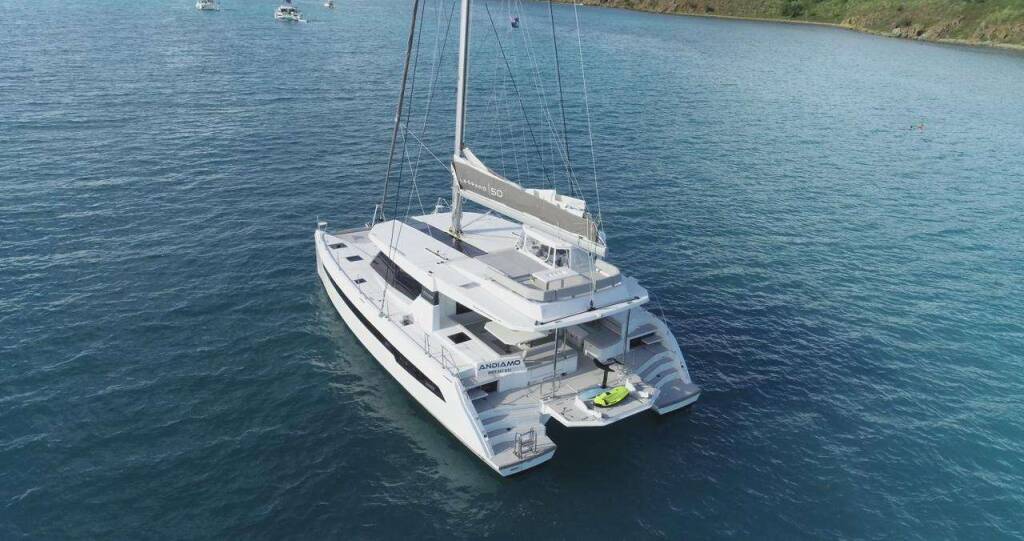 Catamarán de lujo con tripulación Andiamo Tutti, construido en 2023, está anclado en Caribbean Leewards, Caribbean Windwards. Tiene 3 camarotes y puede alojar a 6 personas.